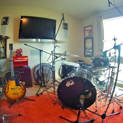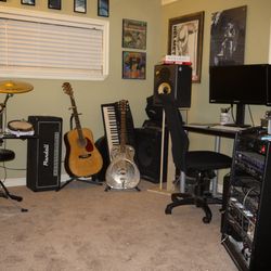 This room is in the back of our house and used as a writing, editing and infrequent overdub space under normal circumstances. I usually work out of Pus Cavern in Sacramento and even the almighty Hangar Studios once in awhile. I have to say the commute was pretty nice for this project!
