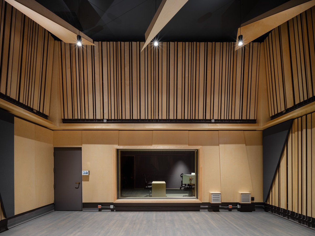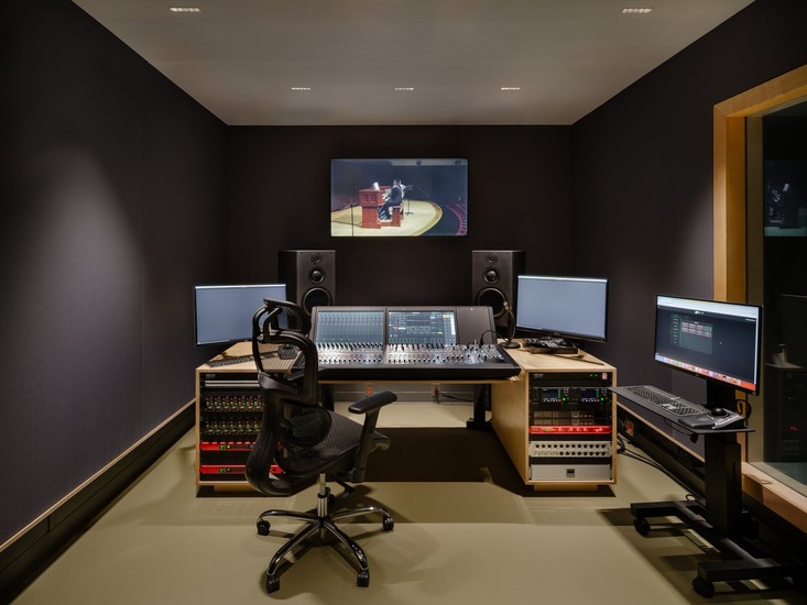 Jim Keller: For the Juilliard project we opened up the wall between the control and live rooms with a very large, custom soundproof window. This creates a more spacious feel in the control room and frames the visually dynamic and expansive live room. It also allows unobstructed views between musicians and engineers.