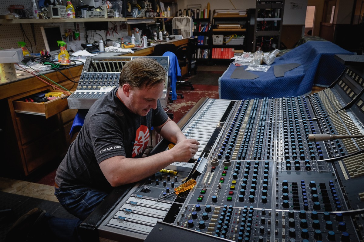 I didn't know we were starting Vintage King; we didn't even have a name then. We would take out ads in the back of Mix [Magazine], a little 1-inch ad for the gear that we would buy, and we'd service it and sell it. Which leads to the point: Our whole thing with Vintage King is we service what we sell; we put a year warranty on used gear, whether it's a Fairchild, LA-2A, Pultec, or any of the vintage or used gear. As we grew this, we hired technicians to service everything that came through the doors. So that was a big deal to us and was the bottom line basis for building Vintage King. When we started out, my brother and I were the only employees. Then we added a shipping guy, a technician, and it evolved like that as any business would. We didn't know exactly where we were going, but I knew one thing: I could make a living doing this as opposed to the struggle in the studio and the struggle being a musician. We got to see the coolest gear on the planet all come through our doors, which was amazing. Back in the late '90s and early 2000s our ambitions were to grow this but still to make records at the same time. As an engineer-producer, I wanted to experience, what does a [Neumann] KM56 sound like? Where can I use that? What is a [Telefunken] ELA M [251 microphone]? I'd heard of all these great models, but I wanted to be sure. We got them in our door to sell them, but I got to use them before we sold them. Sometimes we'd hang on to them for a while. At one point, we'd have three Fairchilds in a rack, when they were actually obtainable! Back then, they were still expensive, but they were not $150,000! They were $20,000, which was a lot of money. We got to hear almost every weird piece of gear that you could obtain. Like the Decca compressors, those cool, square mastering compressors that were in the mastering consoles. I always read that Daniel Lanois [Tape Op #37, #127] and Peter Gabriel loved them, and each had a pair. I thought their recordings sounded pretty good, so I was like, "I've got to find a pair of those!” It took me a while, but I was super good friends with Mark [Thompson] at Funky Junk [in the UK]. When he got a pair he said, "Give me seven hundred bucks for the pair." Now they sell for $30,000 for the pair! I had them for 20 years.