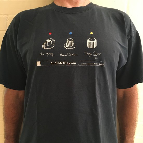 This is one of my faves from our pal Russ Jones, who used to run this outfit. In case you can’t tell those are knobs from a Moog, Oberheim, and Prophet synths, and the signatures are Bob Moog, Tom Oberheim, and Dave Smith.