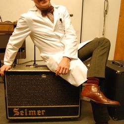 I've got a few amps! A few Selmers, like the Little Giant, Thunderbird, Vanguard, the Treble N' Bass MKII, and my favorite — Zodiac Twin 30 with crocodile skin finish. I also have three Vox AC30s; the normal Treble from 1961. They are all vintage, but there are some differences. I was very lucky that I found a few cool vintage amps in a basement in Madrid in 1993. It was a shop on Calle Princesa called Jebrimont. Most of my amps are from there. Jebrimont, in the '60s and '70s, was the Vox and Selmer dealer in Spain. They stopped their instrument business in the late '70s or early '80s to move to other businesses, but in their basement they had tons of amazing gear — totally new old stock in the original cardboard boxes. Best of all they sold it for the ridiculous prices in pesetas that they had marked in their old '60s business references. There was a Vox teardrop [guitar] in white, Gretsch guitars, everything! It was like discovering the treasure of Tutankhamun! The guy working there, Señor Flores, was the soundman for Julio Iglesias in the beginning. This company put the gear in for The Beatles when they came to Spain in 1965, and they had it all right there!
