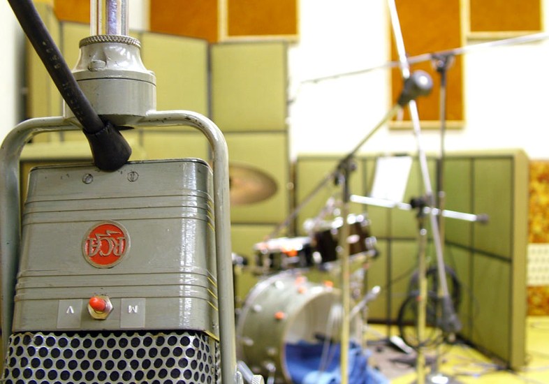 They were big bands, so they'd listen back to the recording through this because they didn't have headphones for everyone. Nick Waterhouse had Leon Bridges as a guest on a song and we tracked in here using the speaker — they were doing a duet together. You've just got to make sure it's not too loud.