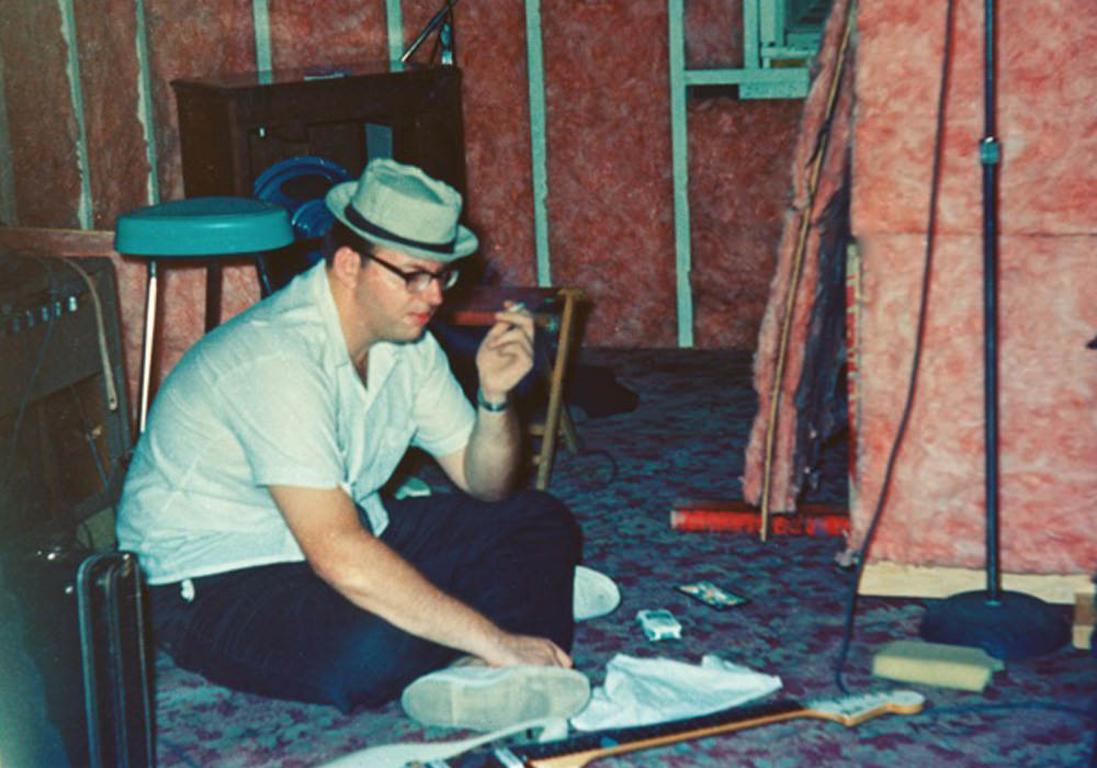 I built a little 2-track studio in my parent’s attic. I used to record track 1, then bounce onto track 2 while adding a part, then back and forth, losing fidelity. I couldn’t go backwards on anything. If I wanted to change something, I had to start all over from scratch. I did have a Fender Echo tape delay. It had a variable tape head, so I could adjust the delay between the record and play heads – a quick slap or a long bounce. There was also a spring reverb for the guitar. My band had gone to a professional studio in Pittsburgh that had two Ampex 2-track machines, and I would watch what the engineers were doing. They would always leave space for the vocal in the mix. Drums and bass on one channel, guitar and keyboards on the other. Then they would mix those down together onto one track and record the vocal to the other track. Then they would do a mono mix. There was no stereo, even though there were two tracks. There was not even stereo broadcasting yet. I had only five microphones in my studio – AKGs and Shures – and no limiters. The songs were recorded on a mono mixer. I controlled the balance by moving the mics around – closer or further from something. The only option was to physically change the position of the mic. The snare and hi-hat was mic’d from underneath, since there would be too much cymbal or tom tom otherwise. Working this way is how I began to figure out how things sounded best. I learned a lot by building that studio. It was a great training ground. My band was pretty busy playing three or four nights a week during that time. I was also signed to Warner Bros. Records, where I recorded the single in my attic. The next thing I knew, I got a box of records in the mail. They had taken what I had done and overdubbed it without me knowing – they put background singers, some percussion, and bass on. It started to get some airplay, but then I received my induction notice and was drafted into the Navy. I served at the Naval base where sonar was developed.