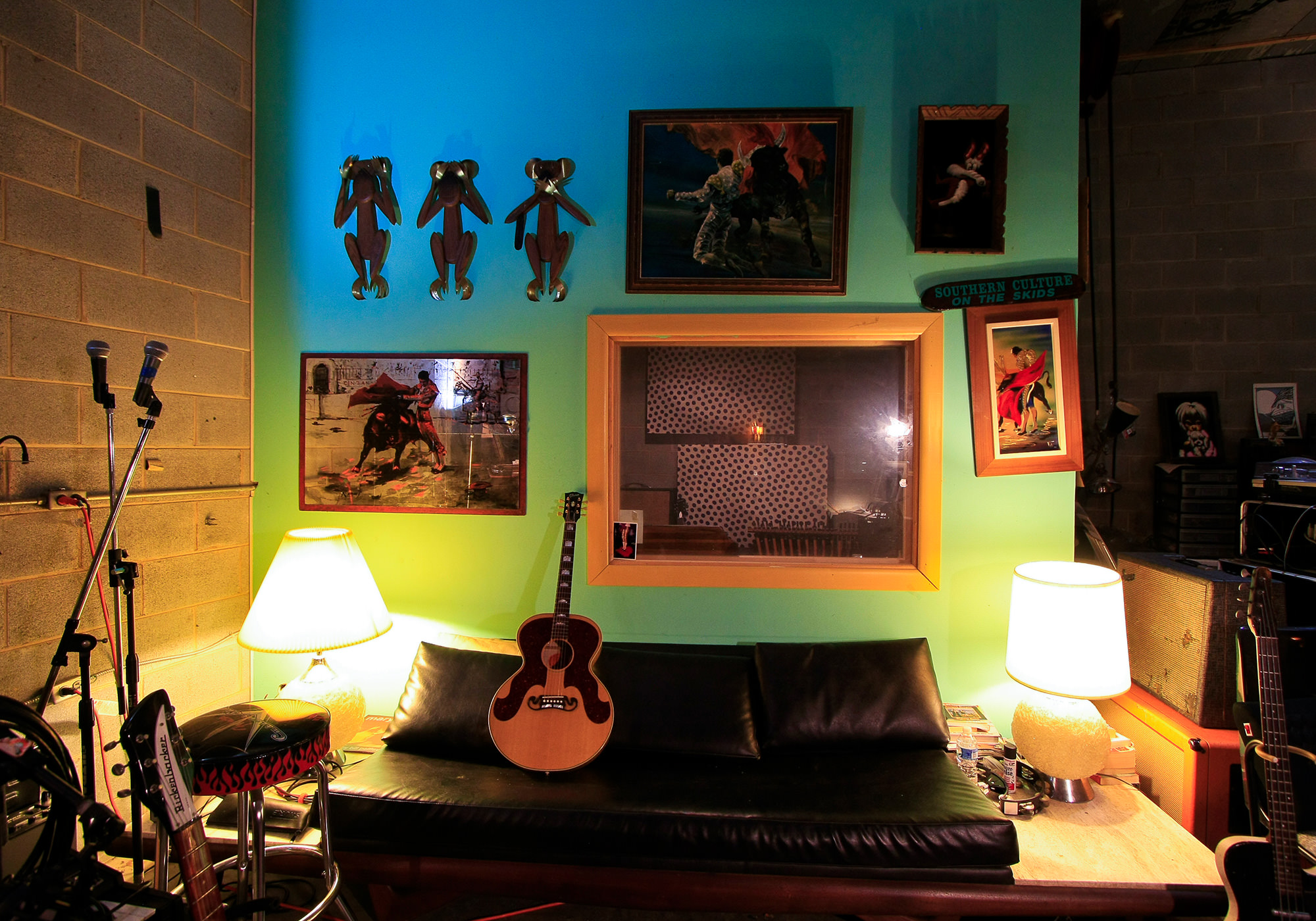 Yeah, luckily for me it wasn’t my sole source of income. All we did on the road was go to music stores, pawn shops, and thrift stores, so I found all the items that populate this place. It’s a great place to put it all, such as the velvet paintings of Wile E. Coyote, and things like that, plus all my old amps and guitars. I’m like a cat lady for amps. My wife was very happy [everything ended up in the studio].