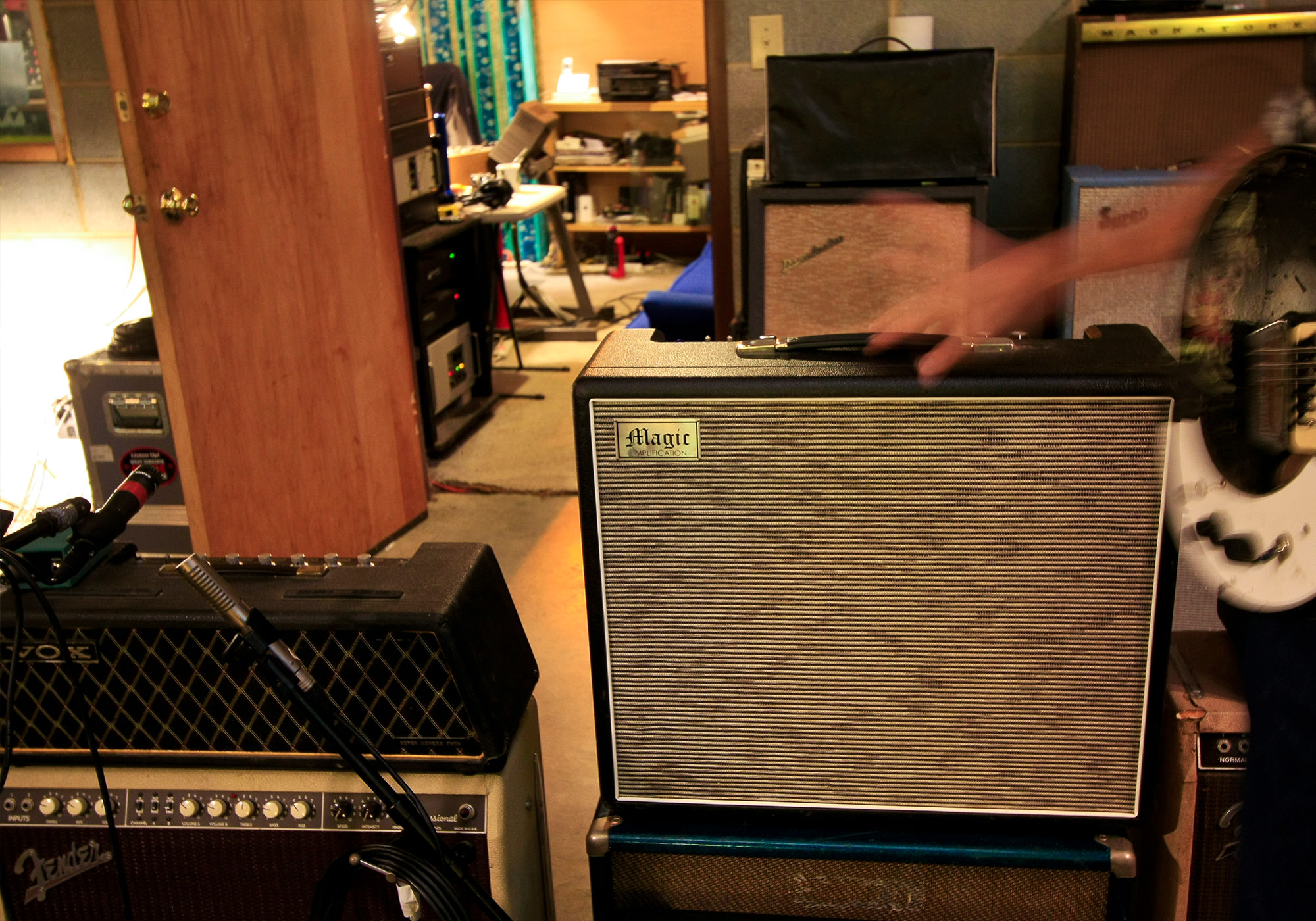 I had ‘em all over here, and it’d take you a day to find a [Fender] Deluxe! I thought, “It’ll be great. When guys come in, they can have their pick.” Like, “I’ve never played through a Supro.” And with the whole re-amping thing – I always record a DI signal, and we can always re-amp it if we want to at mixdown.