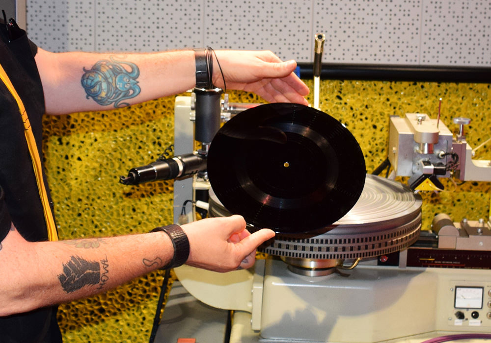 DB: No matter what, if we're doing it live, if someone's bringing in a digital file, a tape, a CD, whatever, once it's all mastered and all the levels are right, it gets cut on the lathe. You cut an acetate or a lacquer – the lacquer is a coated aluminum disc – and you do one lacquer for each side of the record. You send that off to an electro-plating place; you get this nickel and silver–coated disc, you peel off the nickel and silver, and you get a reverse of the lacquer. Those go in the stamper in the presses, and they transfer the grooves to make a vinyl record with the grooves that match the lacquer. Most places don't record directly to lacquer; we eliminate several steps with that. One time we did the world's fastest record, where Jack White did a live-to-lacquer session down in Nashville, and Ben Blackwell – who's one of Third Man's co-founders – took the lacquers and raced them across town to United Record Pressing. United made the stampers, put them on a press, and pressed up records. He drove back with records in under an hour. We call that the world's fastest record. People who were at the show got to go home with a record of the show. If you go online at Third Man Records, you can find the whole story of the world's fastest record.