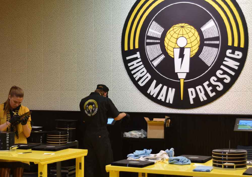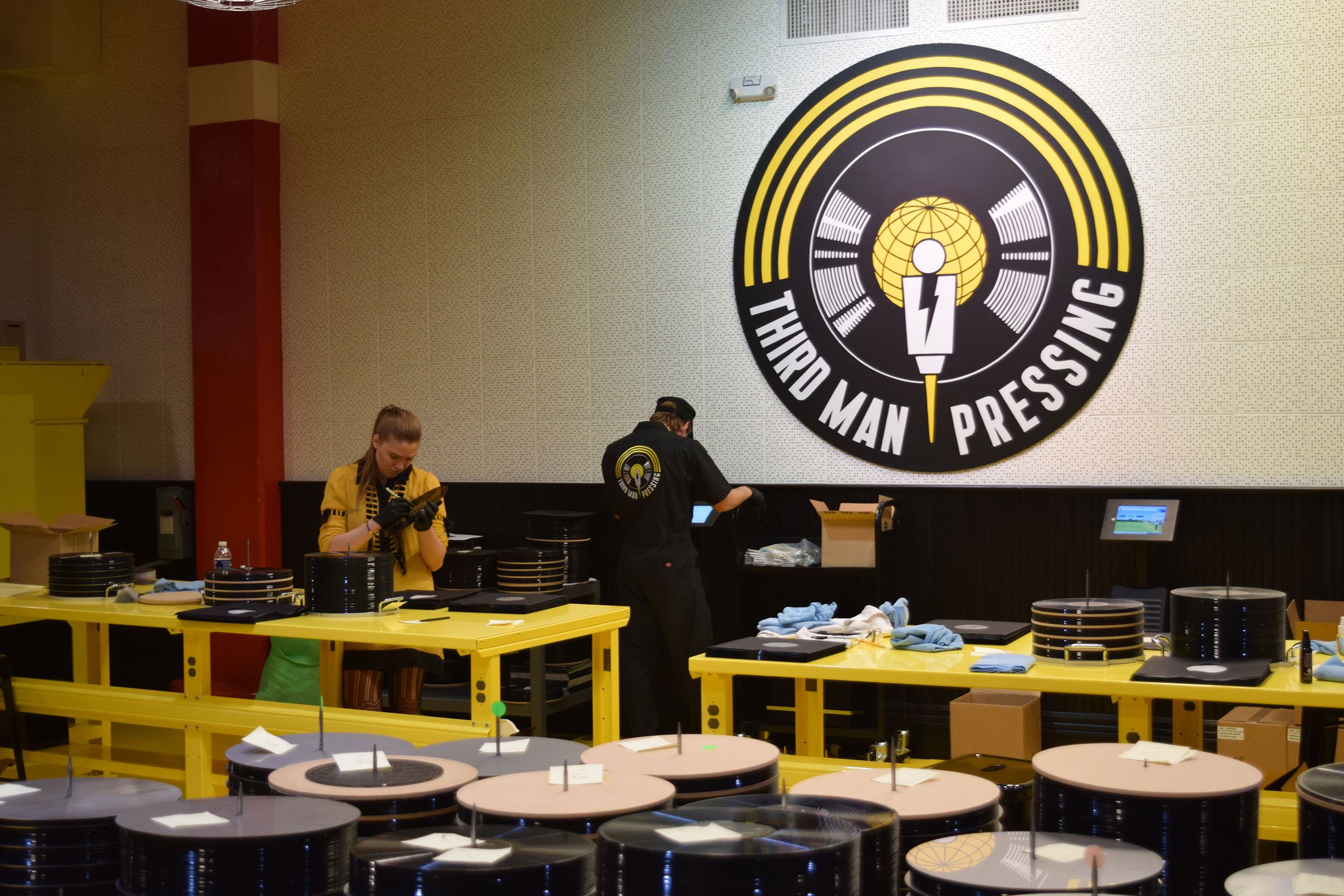 Musician and entrepreneur Jack White [Tape Op #82] has opened a brand-new storefront and vinyl record pressing plant in the historic Cass Corridor section of Detroit, a place that's been home to artists and musicians for decades and is now experiencing a renaissance. Third Man Pressing helps fulfill the increasing demand for vinyl records, plays a vital role in the resurgence of vinyl culture, and contributes to the rebirth of Detroit. White also founded Third Man Records, which has also released music by his bands, The White Stripes, Dead Weather, The Raconteurs, as well as his recent solo album (Boarding House Reach). White has produced countless records, released scores of records by many artists on Third Man Records, written a children's book (We're Going To Be Friends), and put out other authors' work on Third Man Books. He's also helped support music education for kids, acted in films, and created the unique Blue Room; the only live venue in the world where artists can record live-to-acetate. Detroit's Third Man Records and Third Man Pressing Plant feels like a small, family business. Workers earn a living wage of $15 an hour, with full benefits, and the company eschews traditional job titles. Instead, most everyone can jump in to help wherever work needs to get done. David Buick was kind enough to give me a tour of the pressing plant and tell me a bit about what goes on there, and Roe Peterhans, who runs the Detroit operation, chimed in during our conversation.