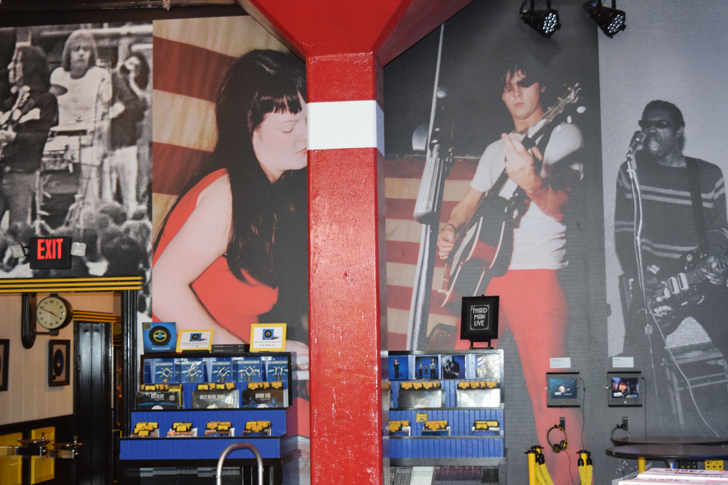DB: This is the center of the Cass Corridor, which was re-branded "Midtown Detroit" about ten years ago to try to fancify the neighborhood. But, since way back with blues and soul musicians, it's always been a hub of artists, musicians, poets, sculptors, painters, drug addicts, prostitutes, and bad guys. It was always the seedy, creative, free-thinking neighborhood. Gold Dollar was a venue where the White Stripes first played, which is not even a mile south of us. Zoot's Coffeehouse venue was a block away. The old Freezer Theater and the Clubhouse were nearby, and they were the main venues for the early ‘80s hardcore scene. There's The Old Miami; a bar that's been supporting the music scene for years. This is the hub of many different generations of music in Detroit. That's what the murals in the front of our store represent. There's a big MC5 mural, of them playing at the Wayne State [University] football field, which is right down the block. Then there's The White Stripes playing at the Gold Dollar. And then the next one is The Gories playing at an old art gallery, which was on the same block as us right now. When the opportunity came to get right here in the heart of it, Jack, of course, jumped on it.