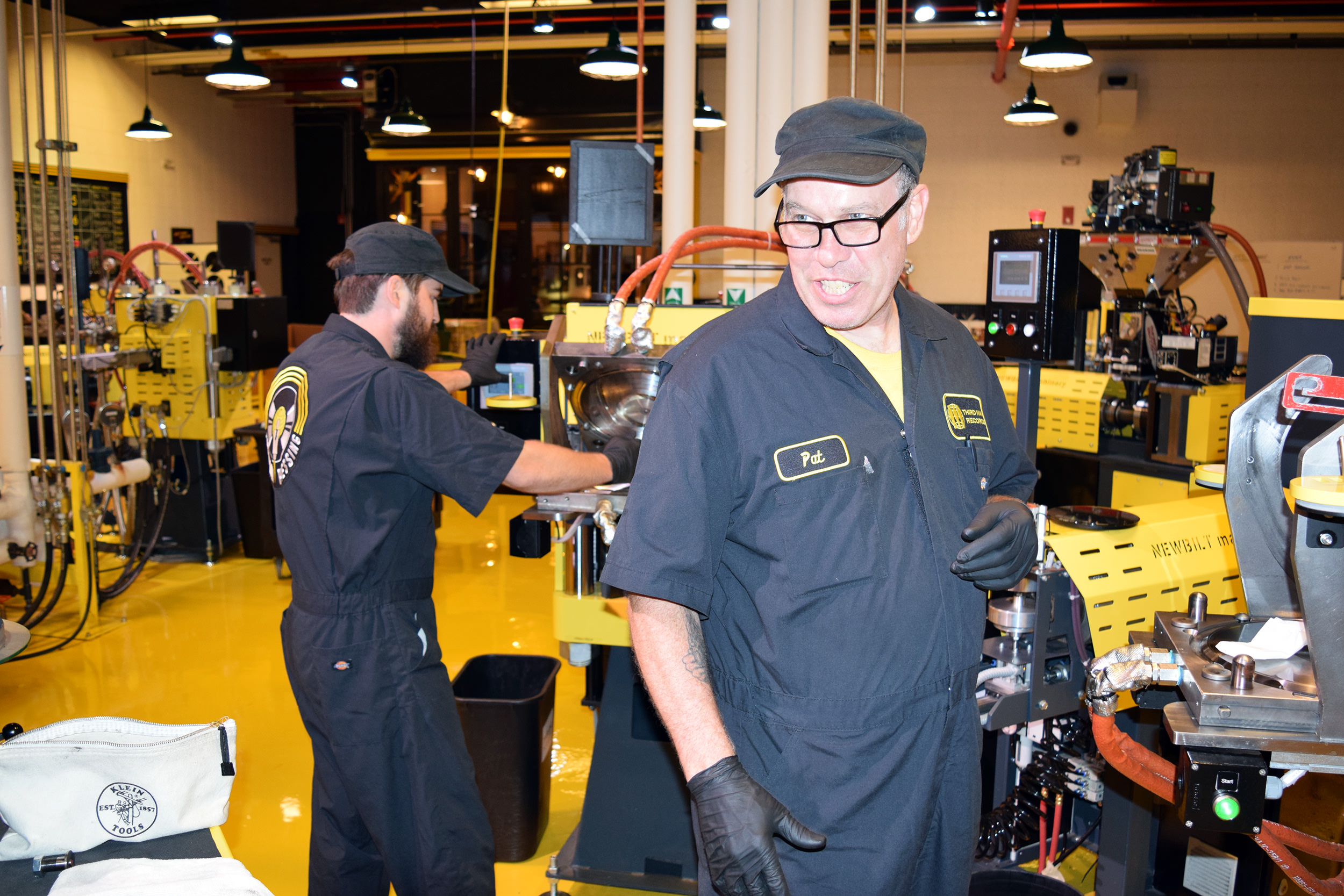 DB: Absolutely. It's nice that we could stock up on some of the parts. And for others, if we need them, it's a matter of days to get them. In the past a machine could be down for months, or even years, until you tracked down the part for it. There's another company in Canada that's started making presses since Newbilt. Newbilt's are manual and the Canadian company's [machines] are automatic. But the machines themselves are basically the same idea as the ones from 40 years ago, just streamlined. The main difference between the old ones and our new ones is that the hydraulics, the chilled water, and the steam were all attached to the machines before. Now we're on a closed-loop system, so we have a chiller room, a hydraulics room, and a steam room. When you're in the actual plant, there's hardly any plant noise. There's no smell, and the temperature is very comfortable – it's very non-plant-like in there. And the machines look a lot smaller because all that isn't attached to them.