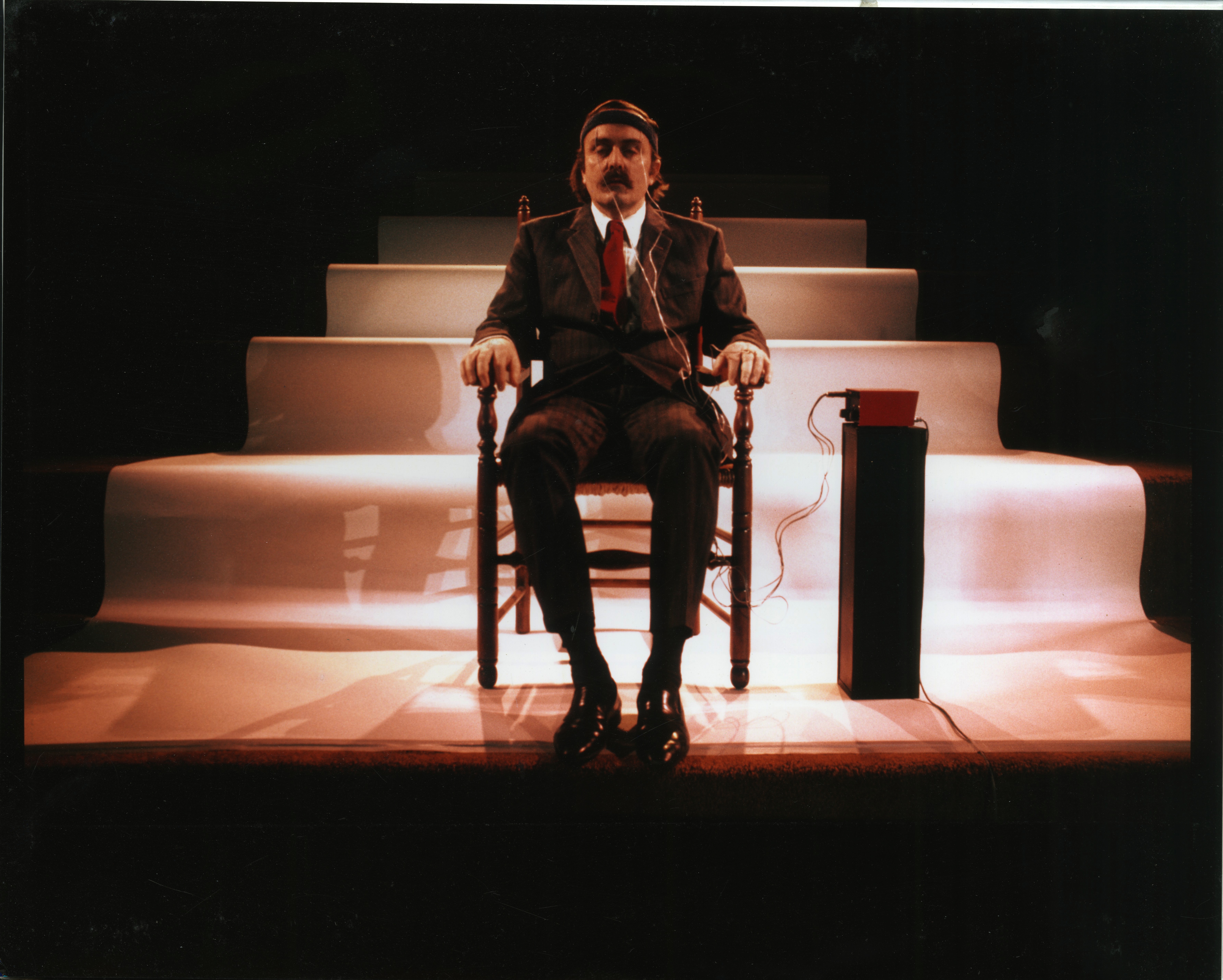 I'm not really interested in the body. I just want pieces of music. My brainwave piece ["Music for Alpha Waves, Assorted Percussion, and Automated Coded Relays"] was simply a way to create beautiful, resonant, low thunderous sounds that activate percussion instruments. That piece is more about the response of certain instruments. A big tam-tam needs a lot of energy to make it sound; only the loud pulses really make it work. A smaller drum, a snare drum, is very easy to make resonate. The birth of an alpha is uneven, and it causes instruments to vibrate in different ways. The most important thing about the piece is that I didn't exert any control. My skin galvanic piece ["Clocker] was that way too. When I make pieces now, I have to make sure that I do not exert personal control. I like the idea of non-control. I had an early piece called "Carbon Copies." I asked people to listen and play back exactly what they had heard. If a player starts improvising, you can hear it immediately and it spoils the whole thing. I just went and heard a beautiful performance of one of my new pieces. When you strike a pitch on the piano, two strings start vibrating at the same time. I had the piano tuned so each string was slightly off. When one piano plays against the other, there is a beautifully complicated beating. Each pitch has a different cell. While they were rehearsing the piece, the musicians were playing like they were playing romantic music, where they lift their hand up and then it comes around and down dramatically. That distracted me; it had more to do with trying to make a poetic gesture than the music. I said, "Don't do that. You've gotta just do the task at hand. Play the chord. And then play the next one when you feel it." I am learning about performance practice in my pieces.