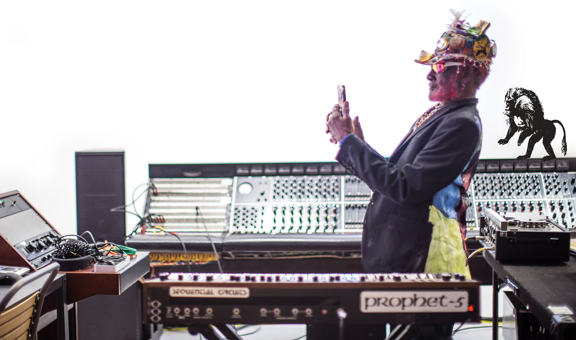 When I saw that Lee was making his way to Seattle to perform a new version of this classic recording, called Super Ape Returns to Conquer (a collaboration with Subatomic Sound System), I was all over it. It then occurred to me that perhaps he'd be interested in doing an interview for Tape Op. The night of the show I went to soundcheck, shot some video and pics, and chatted with Emch from Subatomic. My interview with Lee was to happen the following day at my studio. After confirming with Emch, he mentioned that it would be a good idea to try and talk to Lee that evening "just in case." Well, as it turned out, a contingency plan was a good idea. By that point in the evening there had been prolific amounts of ganja smoked by the man, and plenty of backstage distractions. There were fanboys, hangers-on, a large Rambo-style hunting knife, and a bit of semi-coherent conversation. At one point he changed into a cloak, adorned his cap with battery-powered Christmas lights, and with large spliff in hand gave a riffing sound-system MC-ish performance of "Cloak & Dagger." As we set up for the interview, Lee sat in a chair and I was left to sit on the floor in front of him. Between us was a large platter of fruit, with burning incense sticks planted in several bananas. Lee had no interest in answering any question directly, instead offering a roundabout rhyme, poem, or references to Jesus and ganja, as well as some topics not fit for print.