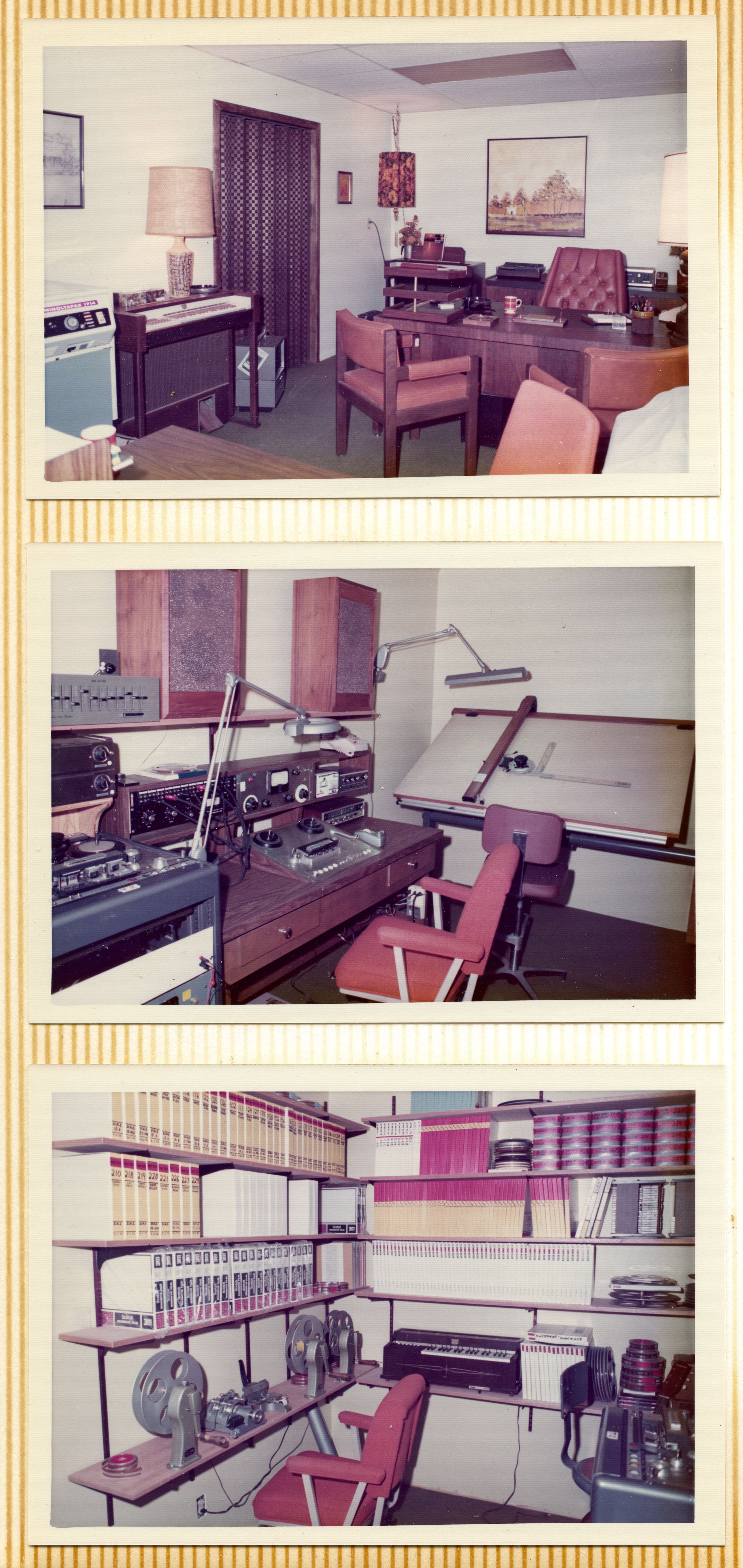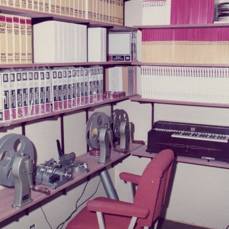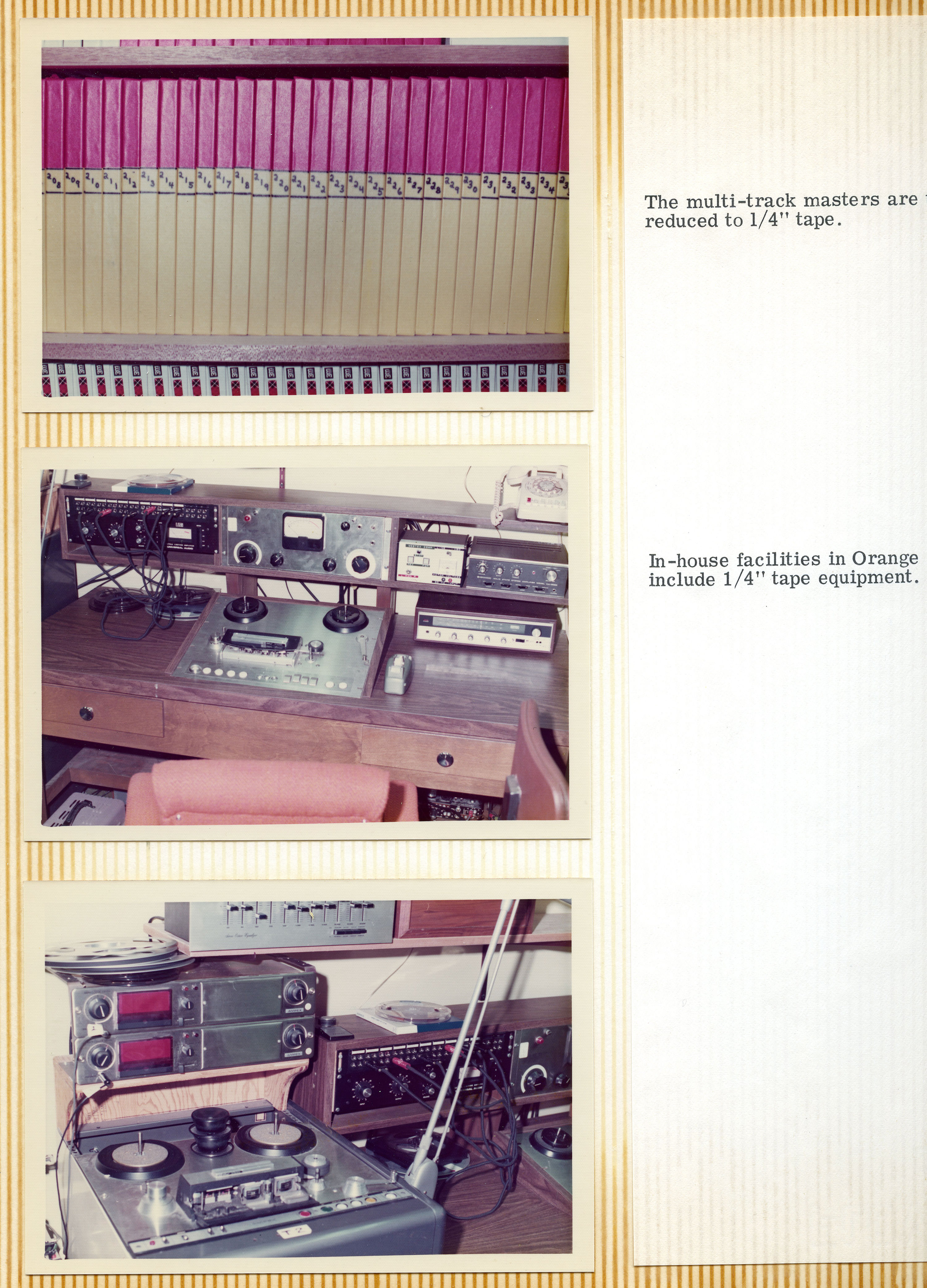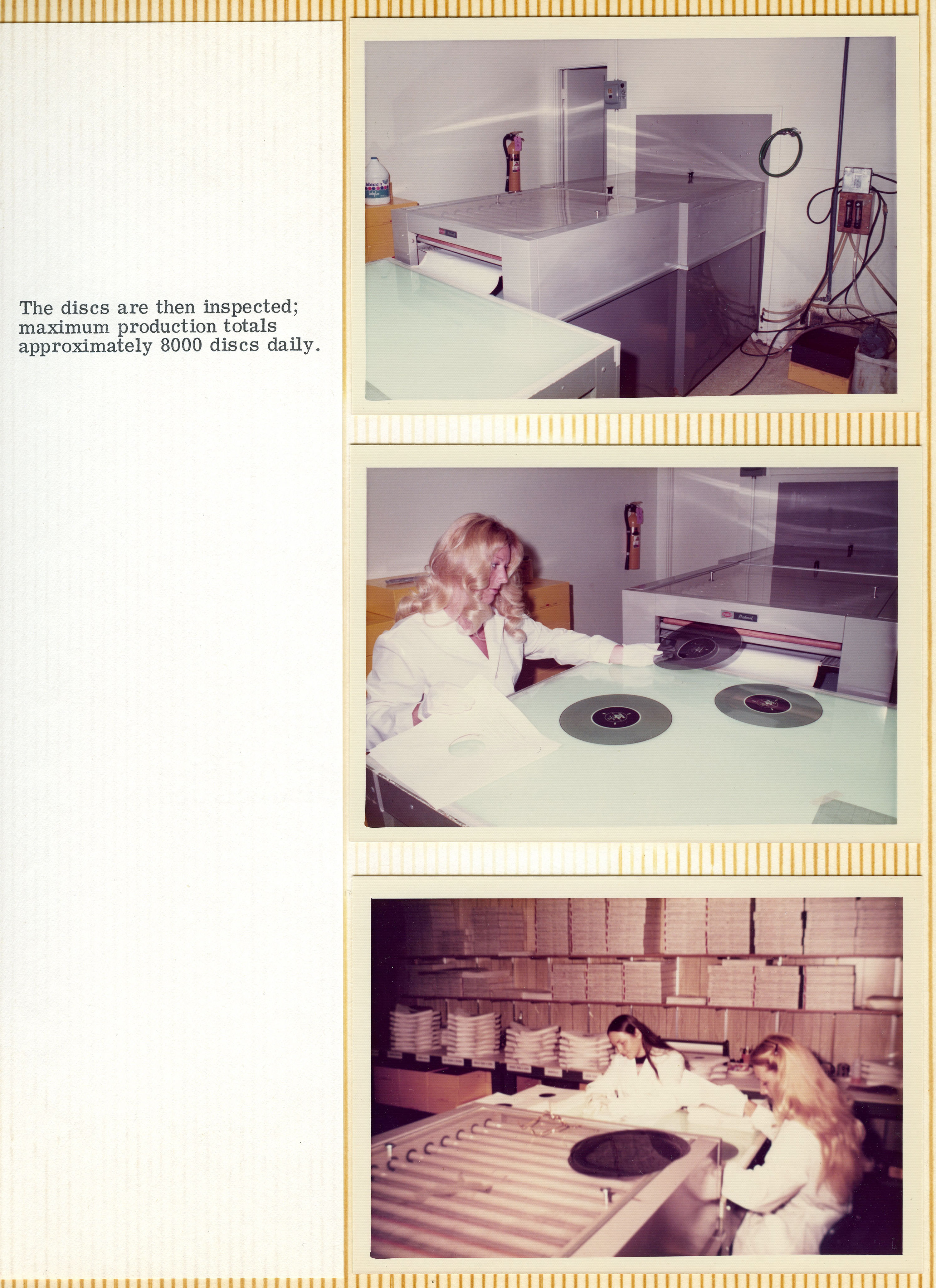 Yeah. They sold the entire operation to a company on the East Coast called Miner Industries. They were making Magnus and Estey chord organs and toys. They shipped everything off to the East Coast, but Mike was the guy that was in charge of making the discs. He was happy living in Southern California and didn't want to move to New Kensington, Pennsylvania. He had to convince them that they needed to keep him employed, because he was the only guy who knew how to do this complicated process, and there was no way he'd be able to teach anybody else how to do it. The whole reason for that photo essay's existence was to show those guys how complicated it was, and how much equipment was involved. He was playing it up. You can see from the photo essay that it starts with making studio recordings of musicians playing. From there, the tapes get mixed down and edited, and then transferred to magnetic film stock. Loops are created, and then they had this modified Scully lathe – instead of a cutting head. It had a light head on it.
