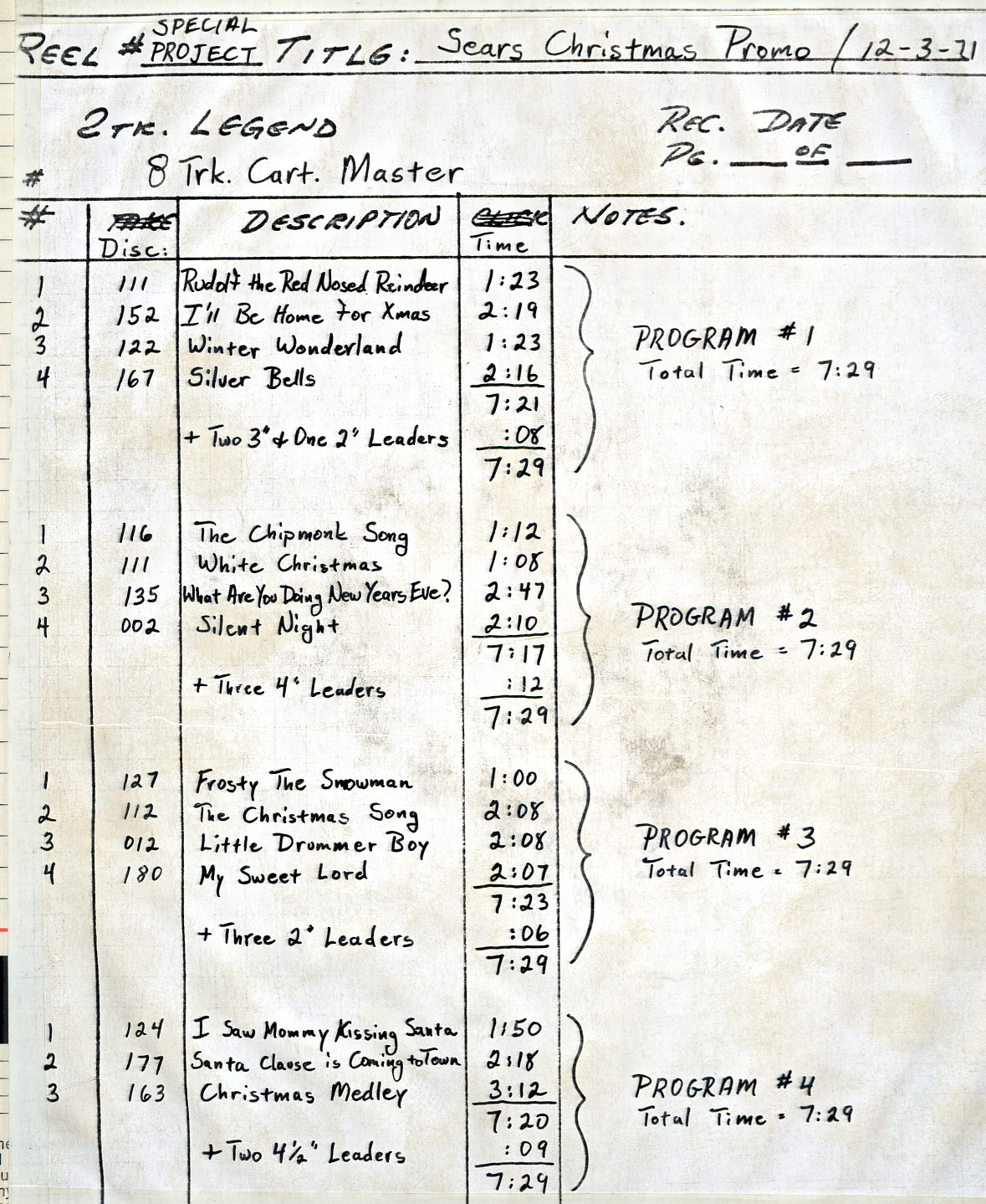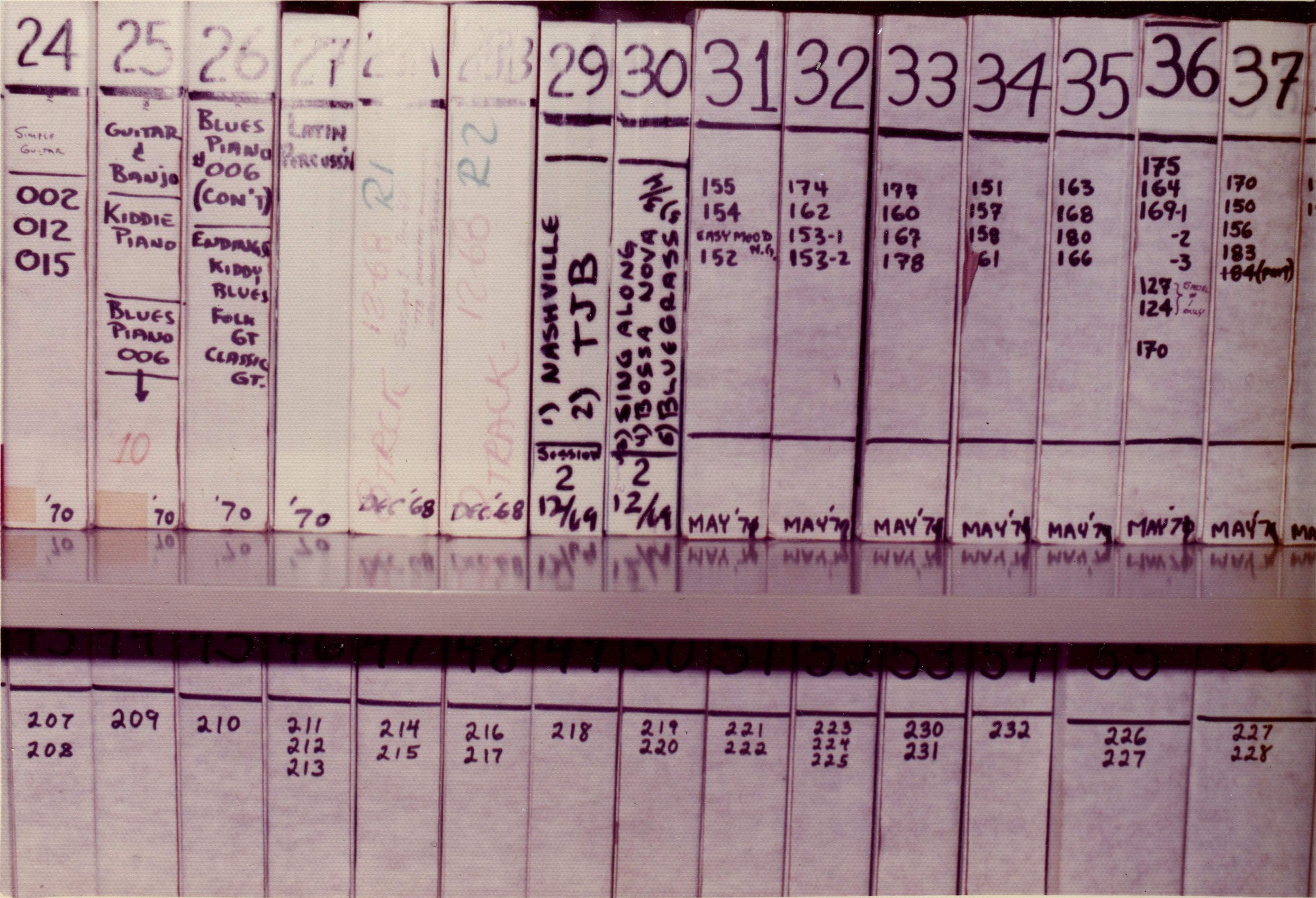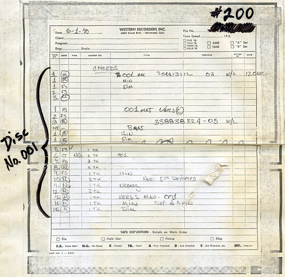 Exactly. At the time, that was the only way they had any hope of synchronizing. For any given disc, Mike would have to do several different tries at a master disc before everything was right. He got better at it. At this point, I've been mastering Optigan discs for twice as long as Mike was ever involved in this whole business. We're using totally different techniques, but I have twice the number of years under my belt dealing with this. The first recordings that they made were made around 1969. They got some musicians in the studio, and they said, "Play a bossa nova groove." They'd go around the circle of fifths, major chords, minor chords, and augmented chords. They didn't know what all they were going to be able to include on the