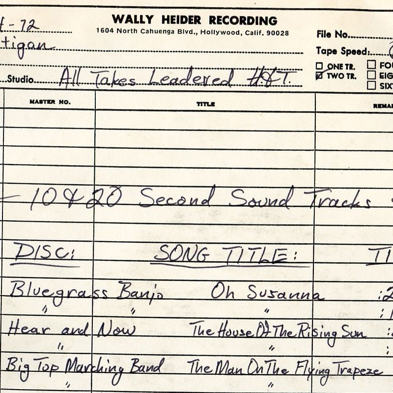 We went out to his garage; there was this big metal cabinet, and there were 80 1/4-inch reel tapes. They were all color-coded, with detailed notes on them. He said, "If you'd gotten in touch with me a year ago, you would have seen a lot more. I had the original multitrack masters that went to the dump, and I had my whole archive of prototype discs and test discs." What he was showing me were the mixdown masters. He said, "These were going to be next, so it's a good thing I found you."