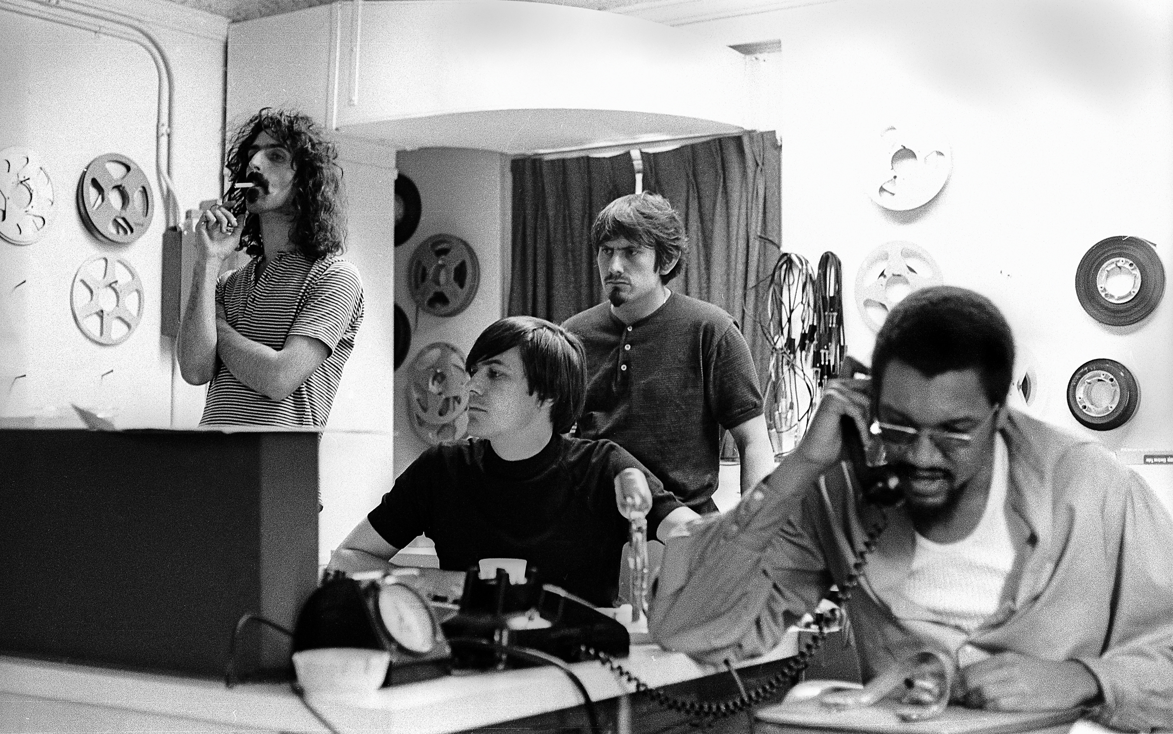 From left: Frank Zappa, Gary Kellgren (engineer), Roy Estrada (bass), Tom Wilson at Mayfair Recording Studios Times Square, New York City. Charlie Steiner © 1967