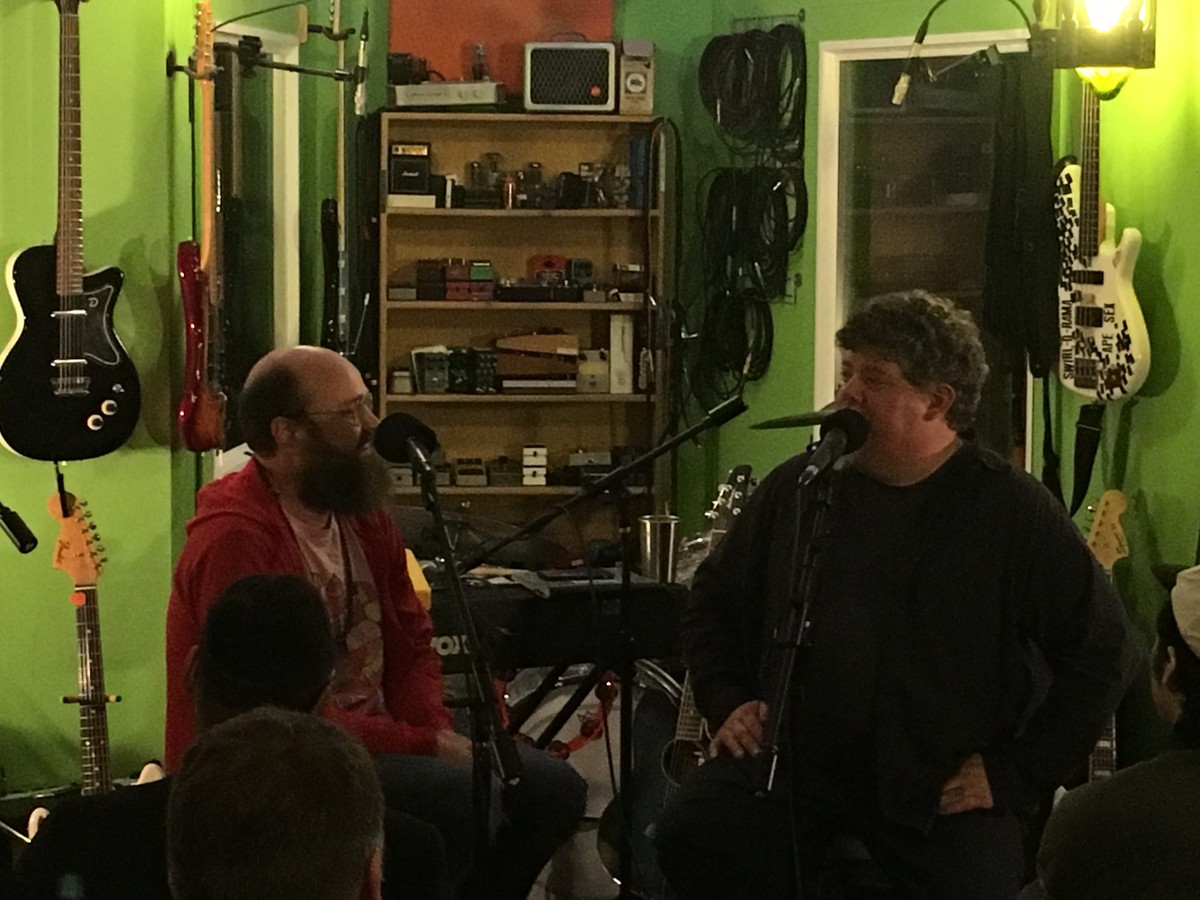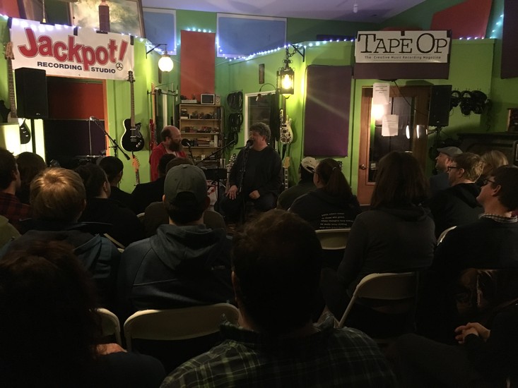 On April 14, 2018, at Jackpot! Recording Studio, I interviewed Robert Schneider in front of a live audience. Afterwards, he did a short solo set, and then The Minders played – a band both of us had recorded albums for and are friends with. Robert and I first met in 1996, when I interviewed him and The Apples In Stereo for Tape Op #2. Alongside some classic Apples and The Minders albums and other projects he's in, he recorded and produced records for Neutral Milk Hotel [#11] and The Olivia Tremor Control [#17] and co-founded The Elephant 6 Recording Co. (See the wonderful The Elephant 6 Recording Co. documentary that we are both in). Now, with his recently attained Doctorate in mathematics, we sat down in front of a live audience to chat again! Check out the podcast of this conversation as well!