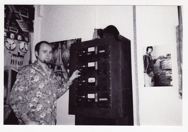 I just use whatever. Sometimes I'll record on a boom box and sometimes I'll record on a computer. The computer's really easy to record on. I like to use 4-track. I just recorded a 7-inch with my band Air-sea Dolphin on 4-track, and it's great. I love working on 4-track. I think that when I record with the Apples, we usually record off of tape, going live off the repro head into the computer. So, the basic tracks are recorded on tape. I think it just depends on the sound you want out of the project or whatever. Let's see, when was this? 1998 or '99. I had an oscilloscope between the speakers where you'd now have a computer monitor, so I'd watch the oscilloscope pattern and stuff. It's very psychedelic to look at an oscilloscope and watch your music go through it. It's basically like a galaxy that's flowing and ebbing. It's doing it with your music, and you're so in touch with your music. You're hearing this thing and seeing this thing, and it looks like retro vector graphics or something like that. It's very, very cool. Anyway, I got a computer, and I put it off to the side. Of course, there's the oscilloscope there, because that's where that would go, and I felt uncomfortable with the computer. I had previously been under the belief that digital recording would suck the soul out of the music in some sort of spiritual way. That's totally not true. The soul is from you and your instruments. It's not from your computer or the recording device. Any recording device is fine. Do you have to paint onto canvas, or can you do it on wood? It doesn't matter. But I got a computer, and it was really, really useful. When we were transferring between the 8-tracks (this is how I use the computer in my studio). I would mix down from the 8-track to the other 8-track, but I'd mix down to four tracks. Then I'd mix those into the computer so I could edit them. Then I'd put them to the other 8-track and keep recording. The computer was like this middle place. I didn't trust that a hard drive would be a physical object that could play music in the same linear, time sort of way that I felt like I wanted to hear it. I wanted to see something spinning when I heard music. A record, a tape, something. A CD. I just wanted to imagine there was something. I mean, a hard drive's spinning too, but you can't see it. It's very abstract. What's going on in there?