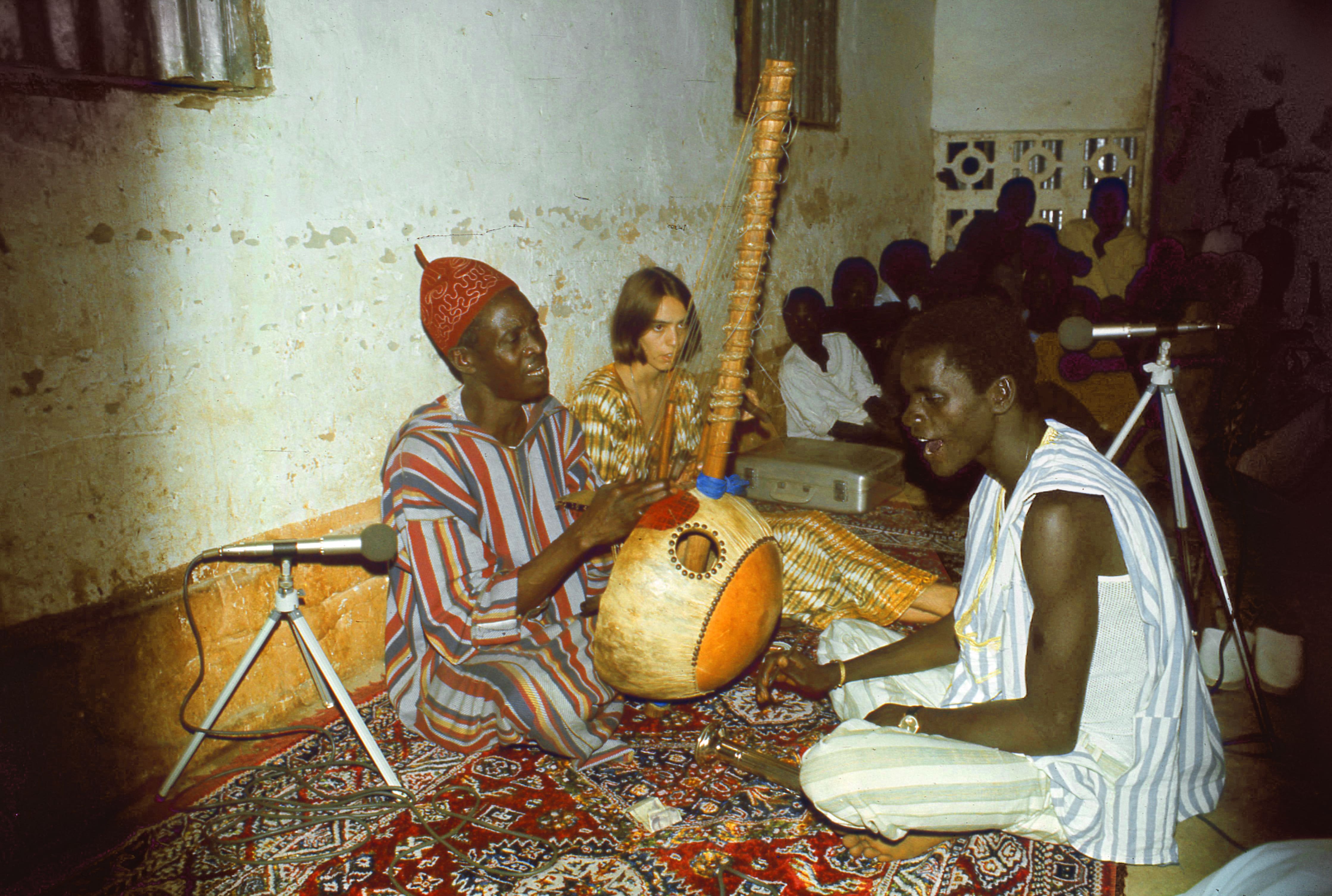 MP: Her father recommended that we get advice from his colleague, Dr. Anthony King, in the UK. And Professor King advised that we should live with a griot* family – observing how they raise children and how they spend their time, and then I could also spend my time learning the kora. He recommended the musician, Alhaji Bai Konte, in particular. Dr. King said that he'd recorded a very large number of griots, and he found that Bai Konte seemed to know more arrangements and more songs than all the other griots that he'd encountered. He said he'd be a good person to live with. But we went to Gambia with no idea if Bai Konte would even be there, or if he’d be interested in hosting us. We went through many people to meet him, but, in the end, we lived there with him and his family from November 1971 to November 1972 – a full calendar year, almost to the day.