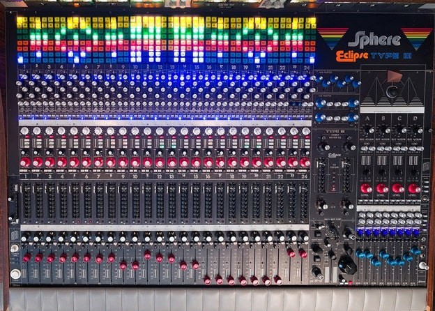 Yeah. And it worked, surprisingly. But it had seen a lot of modifications over the years before I got it. I’m fairly certain it’s the first console Sphere made after Electrodyne closed shop. In fact, the console’s internal wiring was all labeled “Electrodyne.” The console was commissioned by Bob Beckham for his publishing house, Combine Music; they were responsible for writing a ton of country hits in the '70s and early '80s. This was the console in his writer’s studio, so no hits were recorded on it, but hundreds of hits were written and demoed on it. There were less than 60 Sphere consoles ever made, and most of them were parted out later on. Based on my research, I discovered that before the Eclipse Type A consoles, Sphere made a Type I and a Type II. Ours was the only Type II they ever made. I think approximately five Type I consoles were made, and they look a lot like our Type II except they are shallower and more than twice as wide. The Type I and II were designed right before the in-line console concept became the standard, so on the Type II, the whole left section is tape returns and EQs, and the whole right section is mic preamps, sends, and such. Honestly, at least for today's modern studio, the Type I is a pain in the ass because they take up too much room and are hard to navigate. Also, the Type I and II came with Sphere’s proprietary Mix Log, an early mix recall system that used a series of tones that would be sent from the board to the head of your multitrack tape on mixdown, going through hundreds of relays. Then you would play those tones back through the console during your next mixing session and set all of the levels on each channel to read zero on the meters to recall your previous mix settings. It was a total electronic and maintenance nightmare, and it would fall out of calibration, add noise to the desk, and took hours to set up. You might as well just start...
