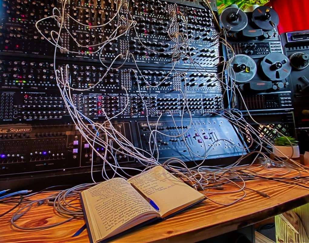 My studio is small and cozy, but I have custom-built large format 5U modular synthesizer cabinets that go all the way around the entire studio. All the trunk lines and outputs are wired to a patchbay that can be routed to anywhere in the studio – tape machines, HD recorders, and DAW. I have quadraphonic monitoring and mixing in the studio at any time, which allows me to listen for the kinds...