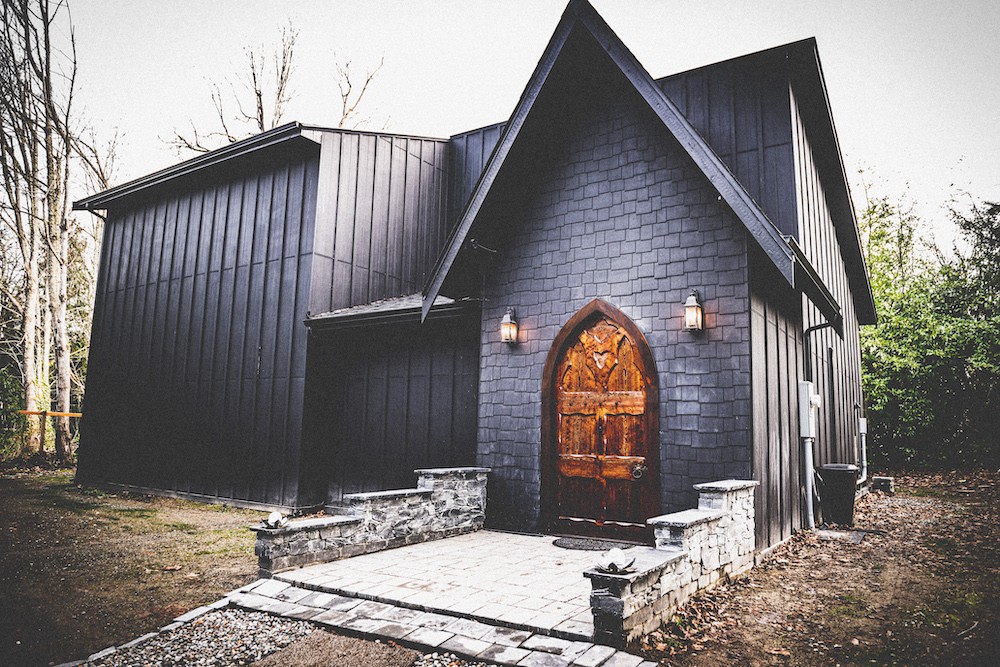 JR: It used to live down at Orbit, leaning up against the live room. When we decided to build this place, I said to Karyn, "Well, we already have the front door.” That was the inspiration to make it a little bit more gothic and have this darker feel. Most people, when they build studios, they worry about putting the door on last!