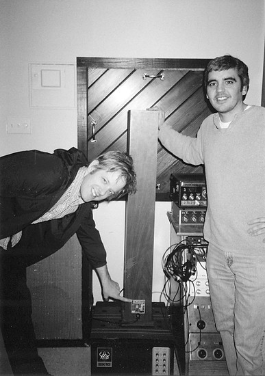 Jim: No, the way we started doing the record — we had this recording space, and I didn't have the 2" yet — so we rented the 8-track 1", that we recorded Telephono and Soft Effects on. We did 8 songs using that. Britt had some piano parts that he wanted to put on there. We didn't have a piano at the time, so we did a dump of a mix to his 4-track, he broke into the UT [University of Texas] practice rooms with a couple of mics — and set them up. Didn't you go once with a condenser mic but didn't have any phantom power so you had to come back?