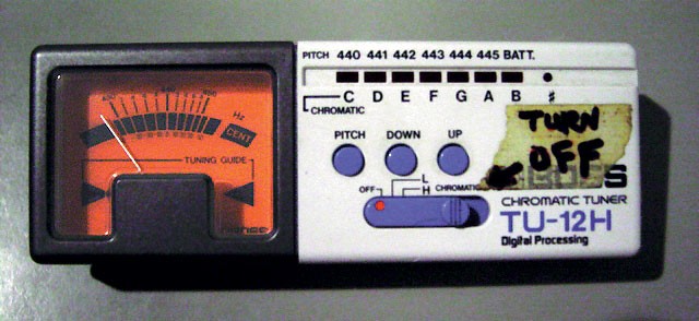 Yeah, hard to believe, and this becomes tuning nightmare #1 when someone wants to do an overdub a few days later. Tuning by ear to the tape can be damned difficult, especially with the crazed noisy bands I often work with. I generally beg such a band to reconsider their tuner aversion, at least for the few days they are in the studio with me. Seems pretty obvious, right? (The single, amazing exception to this has been the band Zen Guerrilla, with whom I've made two albums entirely tunerless. Their tuning sense is so uncanny that I learned to just let 'em alone.)
