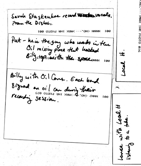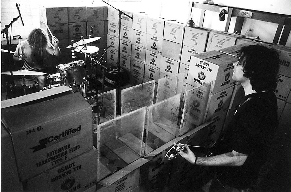 Yeah, but then Tom Daily, one of the photographers today, is doing a solo acoustic thing after Haymarket Riot. So now I have to call all the bands that I think are the most important and influential underground bands in Chicago, and figure out how to get their touring and personal schedules to fit so I can get them all in here. I'm not a big believer in karma, or luck or whatever, but somehow all the bands I wanted could do it. And I somehow scheduled one band a day, sometimes two or three, in eighteen days with only two days off, and now we're just doing it. And it's working. People have come and think it's a great idea and so now I've taken it a step further. I thought, 'Okay, I've got the place, I've got Lance, I've got the bands, I've got a label to put it out, a distributor... I want to bring in a different photographer every day, to document the sessions, the factory and the bands.' I'm doing some video to document it — interviewing the bands, documenting the recordings, interviewing the factory workers and getting an overview of what they do here. So now I've got in front of me, not only a great record, but endless amounts of video and photos. One guy came here the other day and shot thirty rolls of film. The plan is that we're going to take all of the best shots and not only use it for the CD packaging, but also have a gallery showing that would also be the release party for the CD. And the release of the record will be either January 20 or February 10, depending on how we stay on schedule. We're not mixing here, just tracking. Some comping of vocal takes and computer stuff at theendofa session, but that's it.