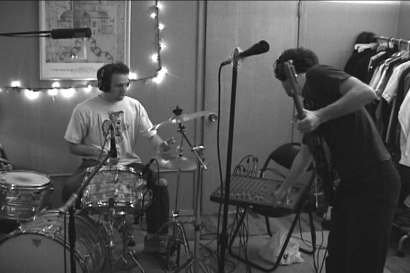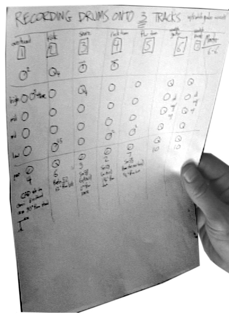 I live in Brooklyn. I like it here. I have a big apartment, live near the subway and the neighborhood is safe. My band practices here once or twice a week in my bedroom- turned-rehearsal space. I've worked out a schedule with my downstairs neighbors so I don't bother them. I record demos for myself at various times, whenever I write the song, but when Nerve Generator decides to put out an album we record the whole thing at once. The whole process usually takes about 3 or 4 months. I try to limit the amount of days spent on recording the loud stuff, like drums. For our latest CD, Erasing Our Minds, I banged out the drum recording in just 4 days (not in a row). In fact recording drums is the first thing I do when recording a typical song. I close-mic the snare and two toms with the SM58s, place the Beta 52 about a foot from the kick and use the CAD E-200 as the overhead. The overhead goes on track 1, the kick on track 2 and the snare and toms on track 3. I play along with our drummer Dave as a guide and the scratch guitar goes on track 4 (this is always taped over later). I use the EQ going in, using extra low for the kick and toms, and extra high for the overhead and snare. During the mixing process I'm able to mix the drums with a stereo effect by setting the kick for the center while panning the overhead and close-mic'd drums to the left and right.