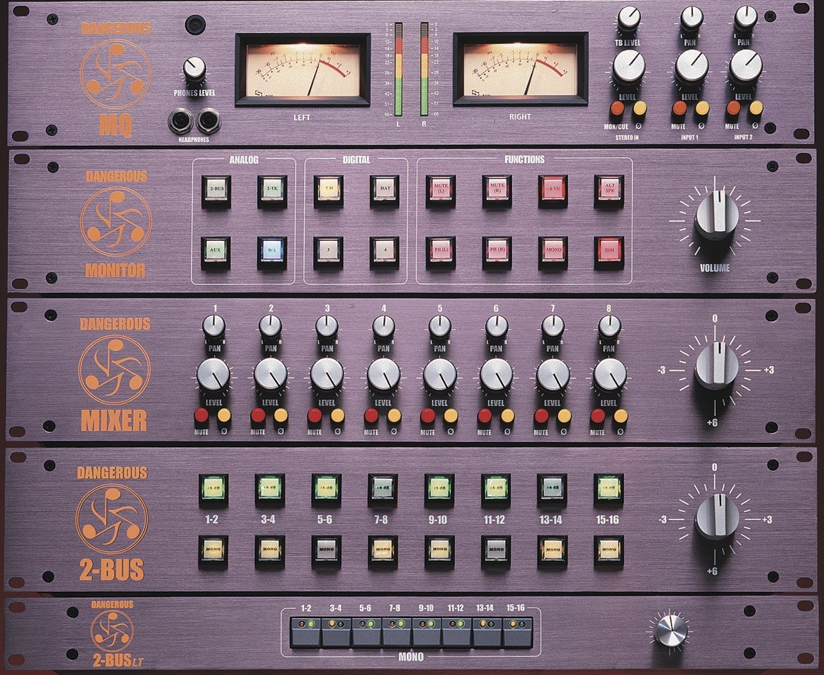 I built the first box, what was to become the 2-Bus, for a friend of mine. Once he switched from analog and got a DAW system, he didn't like his mixes as much. He came over to Dangerous and we started trying to get a handle on the situation. When we ran a few tracks at a time, say four or eight faders into a stereo pair in his computer, grouped them, and ran them out into the Neve console, it sounded a lot better than it did going 32 or 48 channels to two inside the computer. He looked at me and said, "Why don't you just build me something that's a simple stereo pairs mixer?" So I built him a prototype, and it turned out that he really liked it. I started to think, "What's the problem? Why does the digital system sound better with analog summing device?" What I found — in a not-so-scientific way, but more or less just using the gear and poking through with my test equipment and ears — is that it's because the faders in the computer could be run a lot hotter, giving you better digital resolution. The summing box, on the other hand, knocked off some gain on its input channels, and it knocked off more gain on a level control at the output section. In other words, specific areas of gain loss in analog were better than the loss necessary for a bunch of channels to go down to two in digital. This was back in the day of 16-bit systems, at a time when the digital stuff just didn't sound good. So that's why we started making the 2-Bus. But the other thing we noticed at the time was that nobody was building a decent monitoring section, or a good cue system with talkback, all the stuff you lost when you got rid of the console.