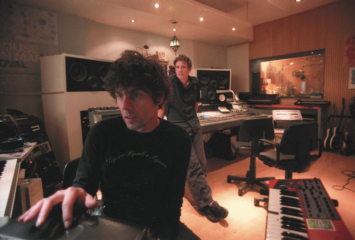 Since we started we had a studio. First it was in Andy's home. You could say bedroom. It was the biggest room in his house. I don't remember what the first board we had was, but now we have a Soundcraft DC2020, and a Studer 24-track machine was always there. That was Andy's baby. He always loved it. Also, lots of outboard gear. For samplers, at first we used an Atari, then Akai and EMU samplers. And lots of effect pedals — I think what was maybe not that common at that time was to use guitar gear for electronic music or to mix things like using guitar on an electronic record, like beats and guitar and breaking these clichés. You had techno, trance, and ambient for chill-out rooms, which were popular at that time. On the other end you had indie rock, and some of the indie rock opened up to more exotic sounds — a bit loungy stuff. But everything was still in its niche. We always wanted to be like a band, like the music we made somehow was abstract and was just there, but if you could imagine someplace where this was coming from it would be instruments being played. It would be a sound that is physically coming from somewhere and not having an abstract moody electronic soundtrack, strange and synthetic. For instance, I always hated synthesizers. When I was young I was a big Queen fan and I was always going for the no- synthesizer aspect of the records. I always liked that all the effects and sounds were made with tape manipulations. When we started working with Mouse on Mars, we didn't really want to use synthesizers. We didn't really want that sound.