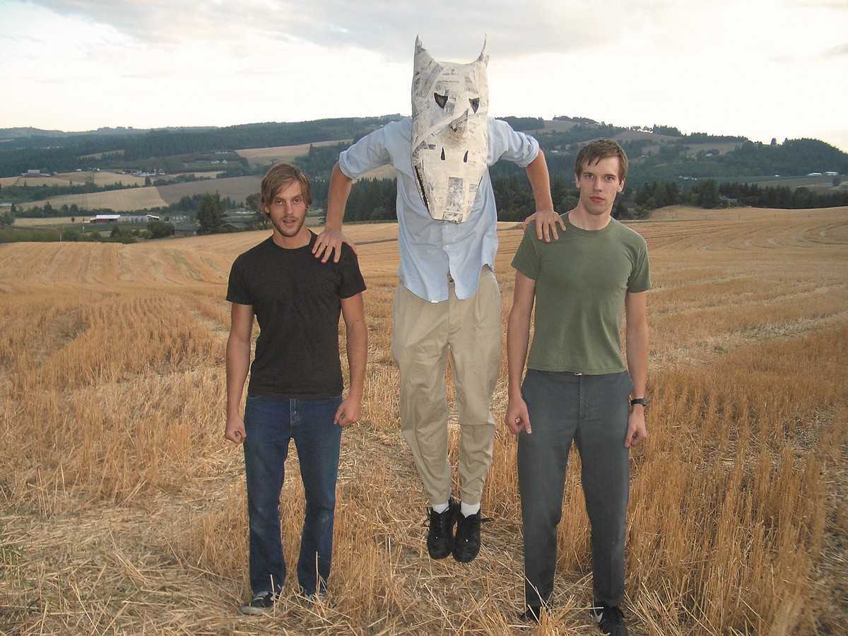 I met Menomena (rhymes with 'phenomena') at their rehearsal and recording space called The Hot Water Bottle, a beautiful setting on top of a hill at the edge of Oregon wine country. Their album, I am the Fun Blame Monster (an anagram of "The first Menomena album") is a tremendous recording. Besides the excellent songwriting and musicianship, I was struck immediately by the album's interesting production style. It sounds equally organic and electronic. The band uses conventional instruments — piano, electric guitar, electric bass, drums, organ, etcetera — and you can tell that they are really playing the instruments, but it sounds sampled and looped somehow. In my research for this article, I found that they had written their own software, and that they had recorded the album themselves. I had to know more. So, after two interviews and three photo shoots, may I present to you: Menomena. The band consists of Justin Harris on bass and baritone saw, Brent Knopf on piano, organ and guitar, and Danny Selm on drums. They all share vocal duties.