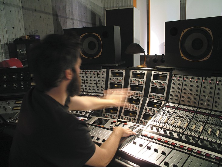 No, no it was not. It was designed by my dad, who was one of the original partners in Helios, and Dick Swettenham, who was the in-house guy and had made a couple of consoles for Olympic [Studios], which, of course, was Dads' main studio for years and years. The only thing that it [the console] really resembles as far as Helios is concerned is the basic layout and stylistically, the wraparound thing. The EQ is based on the Helios EQ, which is very simple. I'm in the process of having them modified at the moment because it works great for Dad but doesn't work so well for me. There are Jensen transformers in the mic pres — I know that — but it basically was handmade from the ground up. It's a fantastic board. But we're making it better. I don't think Dad was ever really happy with it for tracking drums. And the guy that I am working with now, Tom Herzer, has done something with the pres, he's removed a bunch of stuff. We're trying to get it simpler and it is getting better. See, I love the tube stuff, the UA stuff and the EMI stuff. [It's] so simple, so straightforward, and I really don't use EQ that much so I don't need options up the yin yang. It's superfluous and unnecessary because I don't mix other peoples' stuff. I wasn't expecting to inherit this monster. He [Dad] called me up and he said, "Look I'm selling the farm. I don't really know what to..."