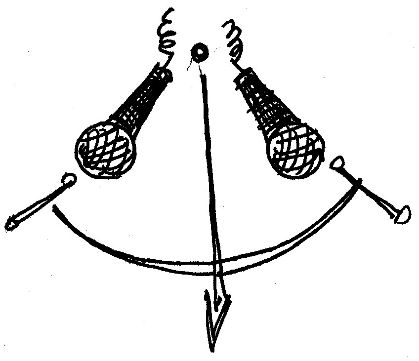 Swiss engineer Jürg Jecklin found that placing an acoustically "dead" disc between two omnidirectional mics was an effective way to record classical ensembles. Over the years this type of baffle has been dubbed the Jecklin Disc, and it works on all kinds of sources. Some companies make Jecklin inspired discs, but you can rig one up at home. The first thing you want to do is figure out what type of material you want to use for the disc. Choose something firm, yet strong. plexiglass, wood, and even a small pizza pan can work. Second, find a way to decrease reflections from the disc's surface. For example, a small pillow can be sliced open and slid over the disc. Try different things.