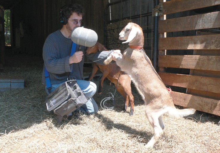 A lot of my original recordings were in New York. I did recordings inside the World Trade Center using contact microphones on the windows. I did recordings in Grand Central Station (an amazing acoustic chamber) — subways, streets, shipyards. In all of those cases, the equipment was small and there was enough noise around that I could just use the mic as an extension of my arms, hands as well as head with the binaurals. With this new setup, and often in much quieter environments, I've found that I have to become invisible and silent. I do all that I can to allow the microphone to capture the environmental sounds as they would exist if I weren't there. I found out early on that this too is not always entirely possible. I was recording in a marsh inside of James River State Park. I'd been there several times, falling in love with the balance of insects, birds, crickets and bullfrogs. I had my microphone on a boom pole, stuck through some thicket. I couldn't exactly see what the microphone was recording. Suddenly I heard a whoosh and a high frequency breathy sound that would speed up and stop. I thought it might be an owl, maybe a jabberwocky. I posted the sound to the sound recordists list serve and was told by two members of this group that it was the warning call of the young white tailed deer. I had been spotted and she was sending out the signal for all deer to stay away! I've learned a great deal from following the sound recordists group. One difference of what I do compared to many on the list is...