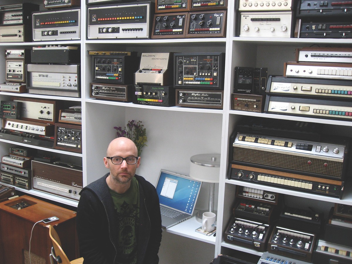 Moby's apartment in Little Italy is simple, clean and economical. Framed gold records adorn one large wall, with the only other décor of mention being a well-organized, sizeable collection of vintage keyboards and synthesizers. His furniture and fixtures are clean and uncomplicated, and the whole place comes together not unlike a meditation hall — serene, peaceful and relaxing.