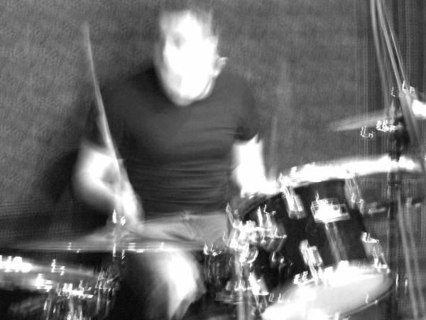 Since we had recorded our second album, Dungeon Studios had moved to a village just outside Oxford. There was a large rehearsal room next to it called The Coldroom. One day in February 2009, we turned up there with our instruments and a Tascam DP-02 8-track digital recorder. We had eight hours booked, and the idea was to get drum tracks down for at least some of our new songs. I was feeling rather tense; I had always wanted to be a producer or engineer, and this was my chance to show if I could do it. We put four mics on the drums; one each on the snare and the kick, one to cover the two toms and one overhead. They were all Shure SM58s, apart from an AKG D112 (I think) on the kick. The 8-track only had two inputs and could record just two tracks at a time. Fortunately, there was a mixing desk in the room, which all the mics went into, then we took a line out from the desk to the inputs of the 8-track. This meant that we would have to get the balance right from the outset — no "fixing it in the mix"! I convinced myself that many great records had been made in the past with similarly unpromising setups, and after a bit of fiddling we tried to record something. Worryingly, the meters on the 8-track didn't even flicker, even after further turning of knobs and pushing of buttons. I was starting to think we might be wasting our time, when suddenly there was a breakthrough and the meters came to life. At least we had a signal going in.