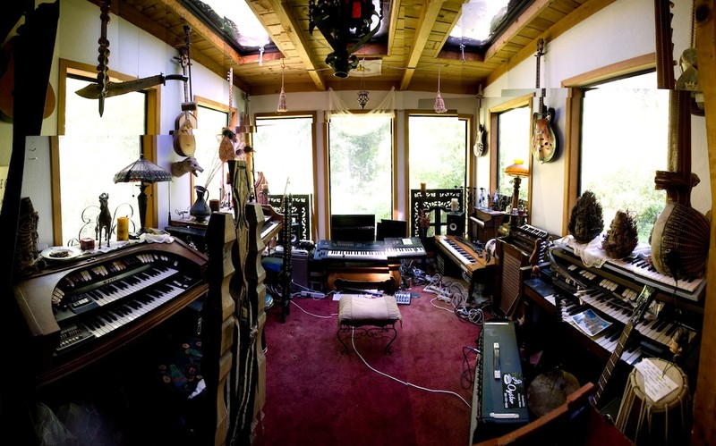 Trey's most under-appreciated talent, however, is his masterful engineering ability. He started recording by tracking his high school band, Mr. Bungle, on a Tascam Porta One 4-track cassette recorder. When they were signed to Warner Bros. Records, Trey seized the opportunity to learn as much he could. He befriended engineer Billy Anderson [Tape Op #33], who taught him the ins and outs of studio recording. By Mr. Bungle's third record, they were linking three 24-track, 2-inch tape machines and two ADAT machines together to accommodate their ever-expanding orchestrations. At the same time, Trey had been tracking his other project, Secret Chiefs 3, in Bungle's rehearsal space. While Secret Chiefs 3 share Mr. Bungle's extensive orchestration and track density, they didn't have the same extensive recording budgets. This forced Trey to develop creative solutions to realize his musical visions in his home studio. Many records later, he has cultivated a set of surprisingly original techniques for getting the most out of home-recording and professional studios.