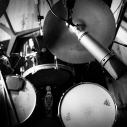 We almost always use a [large diaphragm condenser mic], or a [Shure SM57]. Engineer Bryce Gonzales started using this old early U 87 I have that has been modified with tube electronics. That sort of lives in front of our B-15 these days. I will say that the 57 on the B-15 with a DI is a trick I learned from the great Thom Monahan, and I use that sometimes with great results. The 57 grabs just enough electric bass guitar vibe from the amp without too many sub frequencies. It's a great combo.