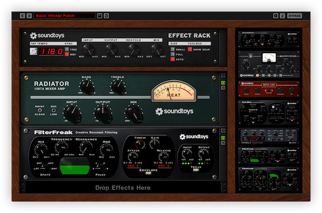 Meet the most powerful tool in the Soundtoys arsenal. Effect Rack is a single, self-contained plug-in that comes preloaded with 14 premium Soundtoys effects that you can use within the Rack (not as individual plug-ins) to easily create multi-effect chains.