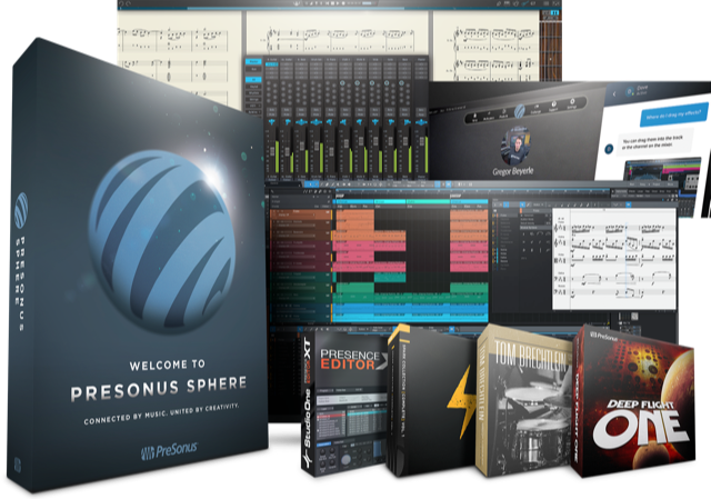 PreSonus Sphere celebrates sonic creativity by providing a complete suite of powerful tools to fuel your imagination and bring your inspiration to life. PreSonus Sphere membership benefits include licenses for the complete collection of PreSonus’ award-winning software solutions for recording, mixing, scoring, and producing, including Studio One® Professional and Notion, plus over 100 libraries of samples, effects, and loops. In addition to these creative tools, PreSonus Sphere members are also given Cloud collaboration tools and storage, chat with Studio One experts from around the globe, access to exclusive promotions, training, and events, with much more being added continuously—all for a low monthly or annual membership.