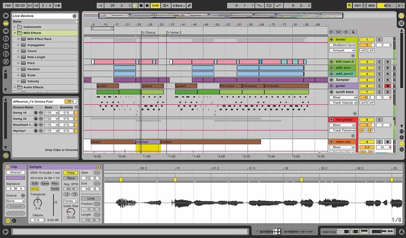 GB: The honest story is that it was always meant to be everything a musician should need. That was the scope of it from the beginning. It was a little megalomaniac, I guess, but we just sat down with — we're around the corner from a situation where a computer is going to be so powerful that it can run all the processing next to all the UI, next to all the control and everything that you would need to run a full-blown studio — everything a studio does today. Once we are there, what is the musician going to want to be working like? It's a whole different paradigm. In the classic studio situation legacy from the '50s, '60s, '70s and so on, the studio is the place you go to produce. You have your song done and you come to the place. It's all in your head and you've practiced and the whole band is tuned in. Then you spend the shortest time you can in the studio, because it's an expensive place to rent to get that down onto tape. Once you have a machine that you don't pay rent for — it's with you all the time — you're going to have so many different applications than just a recording of a song that's already done. You're going to want it to do something for you when you're trying to come up with an idea for a song. Plus, beyond the production, you're going to want the computer to help you with your stage performance and your playing out. We thought, "We need to conceive of an environment that makes sense through all these different steps in the process and that connects them." Also so that it's not, "We're going to have to play out tonight. That means we need to get our heads into a new tool, repurpose what we have in some way so we can deliver this to an audience." It should really be one environment that connects all these different angles of the process. I guess the performance aspect of it was what caught people initially — because that was just the most glaring [product] deficit at the time. There was just no other way you could do it at all. You needed to schlep a whole lot of gear to a venue to play. Most people said, "Now that's a fix for a very obvious problem that I have." I guess that got a lot traction in the beginning, but it turned out most people use it for creation more than performance.