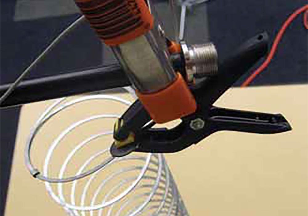 The easiest way to turn the disc into a contact mic is to solder it to an old guitar cable — otherwise use any piece of shielded cable you have lying around. You should use shielded cable to keep the noise down to an acceptable level, and keep it under 10 feet long for the same reason. Cut the plug off one end of the cable if necessary, and strip back the wire as shown above. Solder the cable's shield (the outer conductor) to the thin wire attached to the metal rim of the piezo disc — then solder the inner conductor to the wire coming from the crystal, as shown in Figure 3 (if you swap these connections around the mic will hum). Solder a mono 1/4" plug to the other end if you're using raw cable.