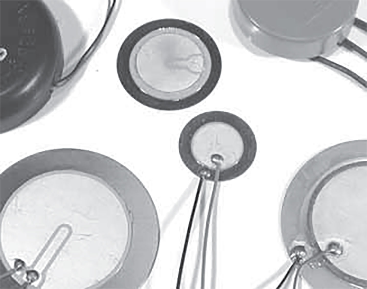 The heart of a contact mic is a piezo disc — a small disc of brass on which a thin layer of ceramic crystal has been deposited (see Figure 1). They are typically encased in a black plastic resonator and are used to make that beeping sound in microwave ovens, alarm clocks, ATMs, etc. You can buy one at your local Radio Shack if you're in a hurry, but you'll pay a premium for that convenience and will have to draw on your clam- shucking experience to extract the disc from its shell.