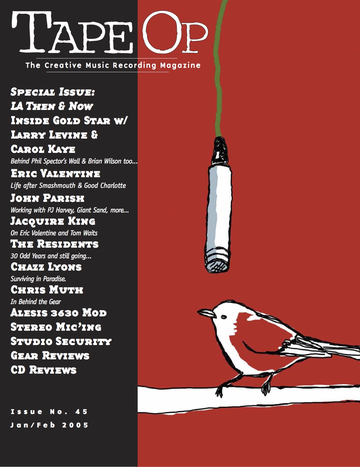 P. S. Some folks might think, "Of course Larry can pick and choose projects." But, this is the first time I've really been able to do this, after ten years of "charging" for recording and eight years of owning a studio. And just so you know, at some points I am turning down work when I need the money — I'm just trying to keep my sanity and find time to work on Tape Op as well. I feel like I'm barely getting by and that makes me nervous!