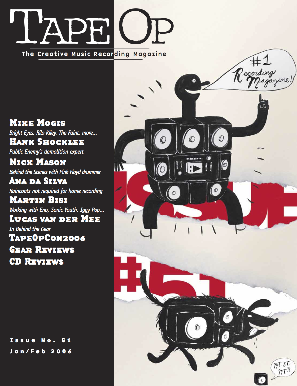 On another note, the Tape Op Message Board has been up and active now for a few months. It looks like we've finally found a stable home for it, thanks to Ryan Abernathy and Hillary Johnson. Many thanks to our moderators: Tony San Filippo, Chris Garges, Hillary, Craig Schumacher, Joel Hamilton and Brian A. Roth. It has been a new twist to have moderators and more forums for specific topics — so far I think it's working real well. Please check it out — it's free and a great place to ask questions and discuss topics. Just go to www.tapeop.com.