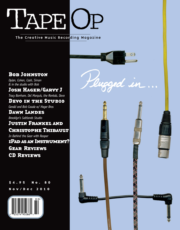 I recently did three one-day sessions in a row with three different artists whom I had minimal contact beforehand. I thought of these as "cold call" sessions, as we hadn't done preproduction or much chatting before recording, and in two cases I had no real idea of what the music would sound like. For at least four years I hadn't been working in this fashion, as I'd been busy with moving to a new home, moving my studio to a new building, working on Tape Op and some of our books, doing archive work and attending to multiple overwhelming personal events in my life. The recording sessions I'd done were either with repeat, long-time clients or on jobs lasting at least several days or more. But this time in Portland I picked up some of these "shifts," and it was enlightening. In all cases I felt that I learned something about myself.