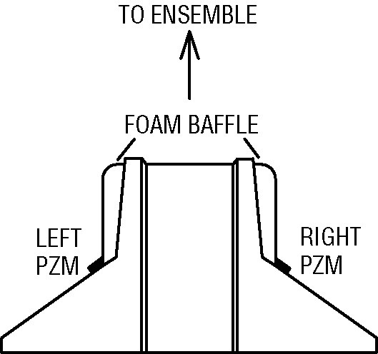 Another format uses two Pressure Zone Microphones, ear-spaced on angled boundaries, with a foam baffle between the mics (as in the Crown SASS-P MKII — Fig. 8). You can even tape a couple of mini omni mics onto glasses, with each mic on either side of your head near your ears. To compensate for the acoustic effect of the head, this setup needs some EQ (a broad dip around 3 kHz). With the baffled-omni pair, the level, time, and spectral differences between channels create the stereo images. The omni condenser mics used in this method have excellent low-frequency response.